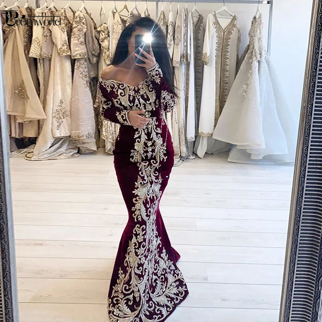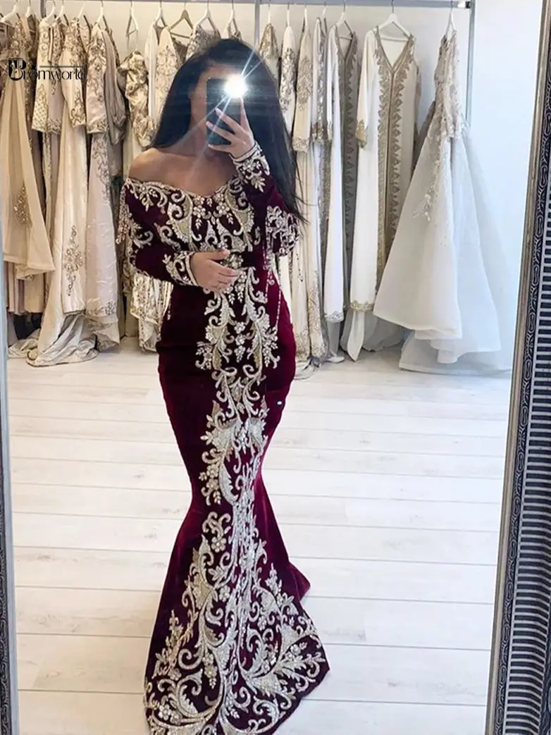 Женское вечернее платье-русалка, Бордовое платье с длинным рукавом и кружевной вышивкой, официальное платье в арабском и мусульманском стиле VOLOUR Dubai