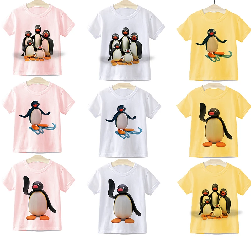 Детские футболки с рисунками из мультфильмов для детей для девочек и мальчиков и девочек для детей, детские футболки для малышей с изображением пингвина семья вечерние футболки, топы, одежда короткий