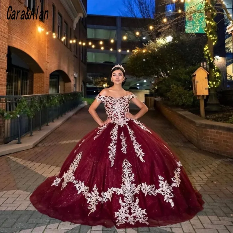 Vestidos De 15 лет бордовые платья Quinceanera Кружевная аппликация милое 16 платье с открытыми плечами мексиканские Выпускные платья 2021