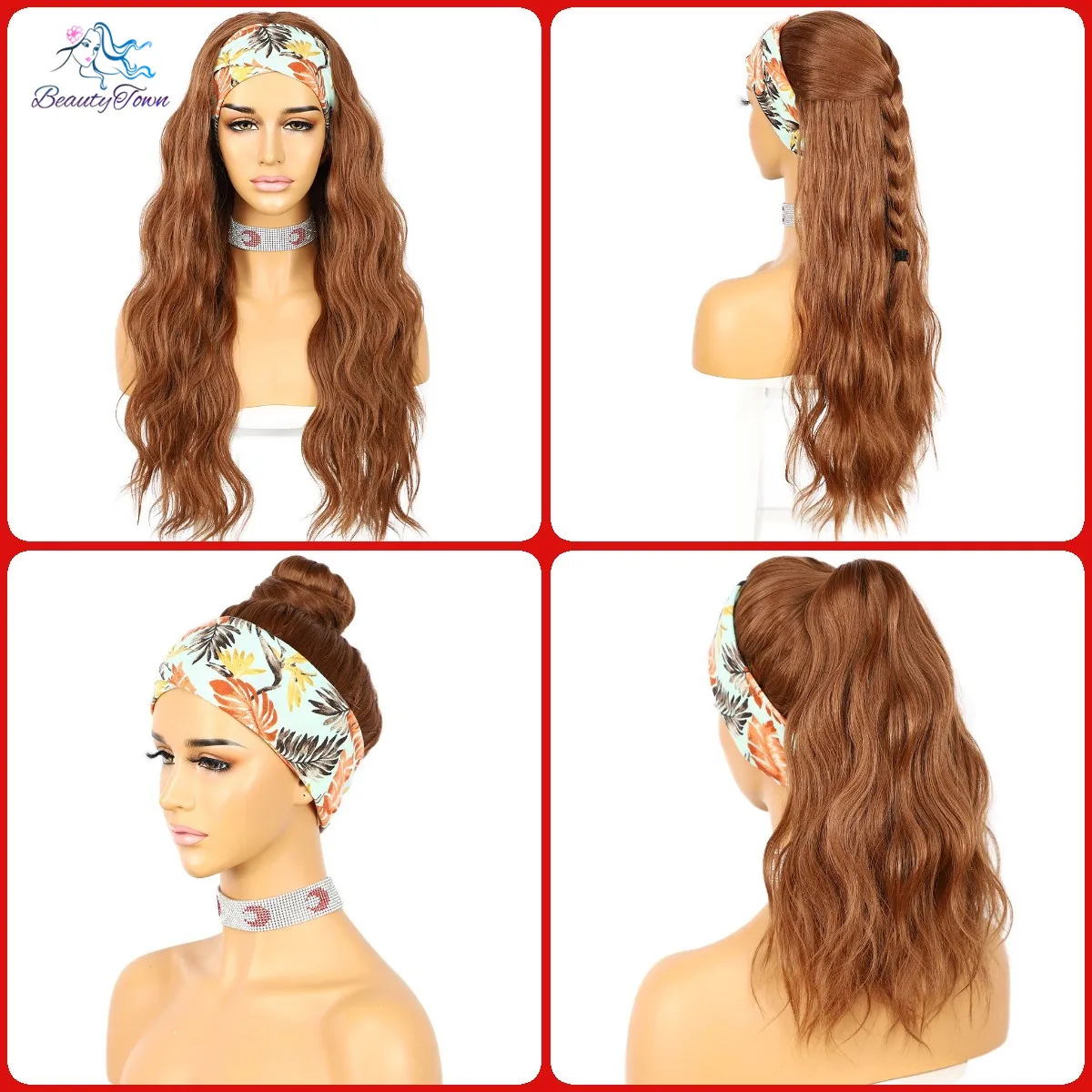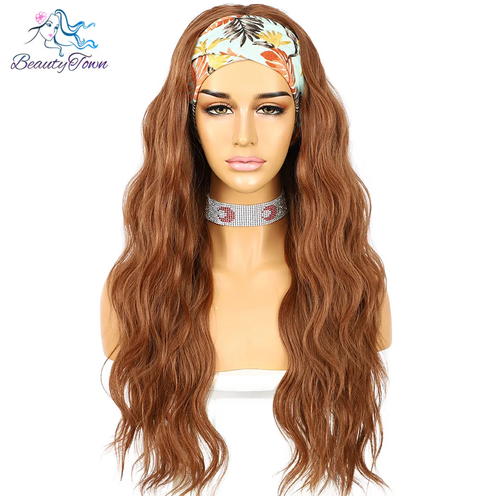 Парик для женщин BeautyTown, длинный волнистый парик коричневого цвета, парик с головной повязкой натуральный, без геля, без клея, 2 свободные ленты, парики на каждый день