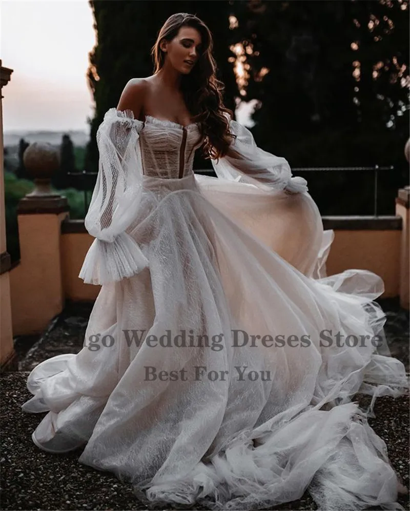 LORIE Свадебные платья из тюля с открытыми плечами без рукавов с от...