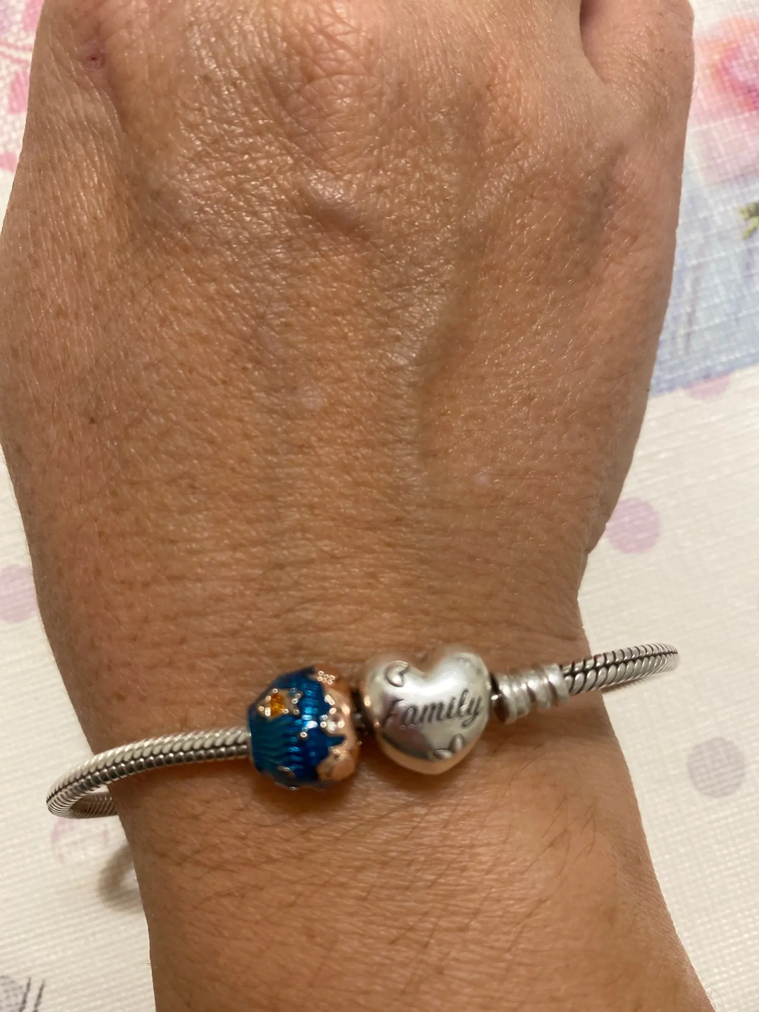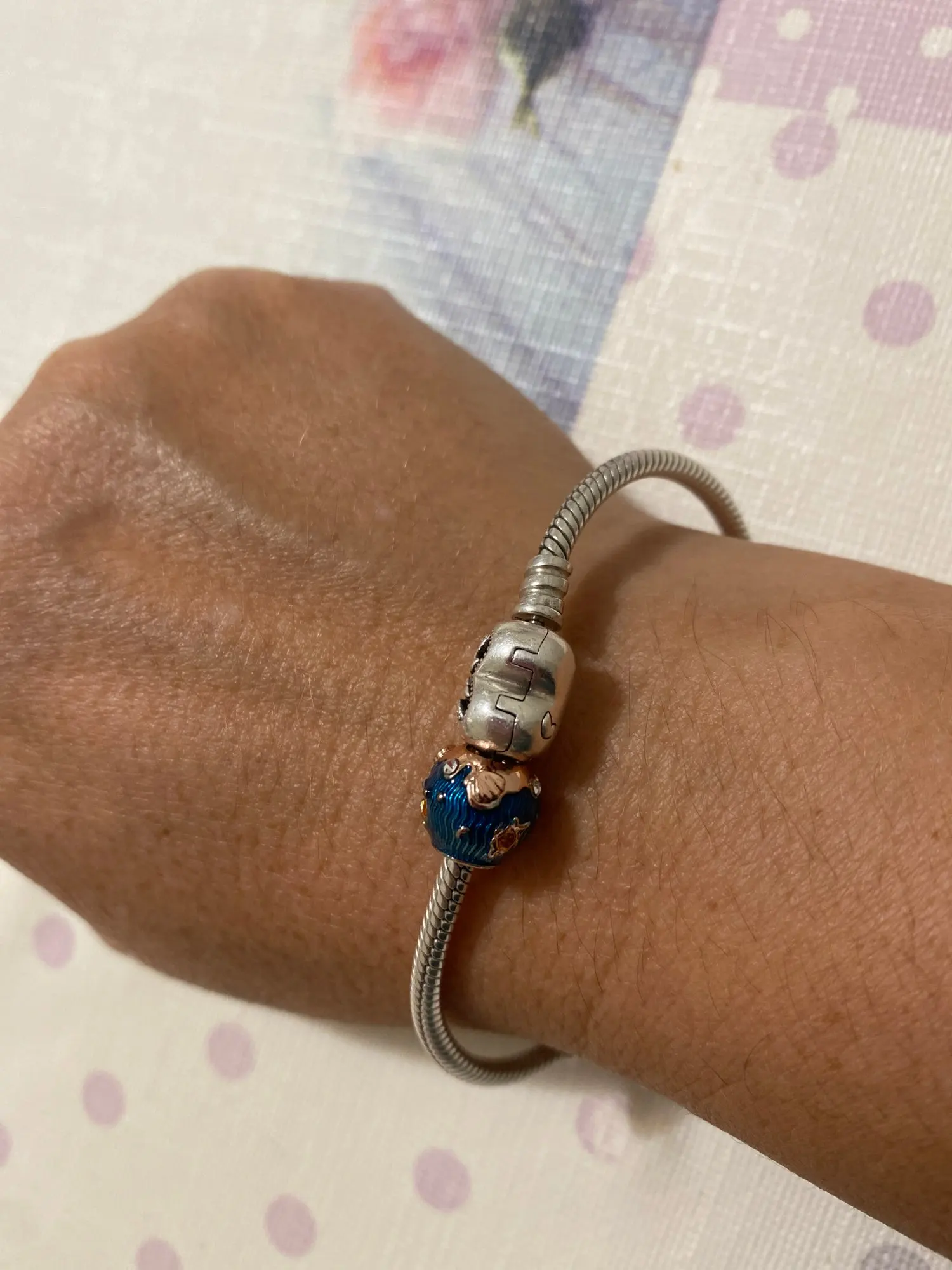 Es muy pequeño. No es el mismo que en las fotos que muestra el vendedor. En las fotos muestra uno idéntico al de Pandora pero este no es el. Es muy pequeño y no es redondo. Por un lado es más ancho que por el otro. No se si es el mío que está mal hecho o son todos así. El pez que aparece con cristales en la foto solo es dorado y con agujeros. Es tan pequeño que en las fotos no se aprecia lo que quiero mostrar. Un fiasco.