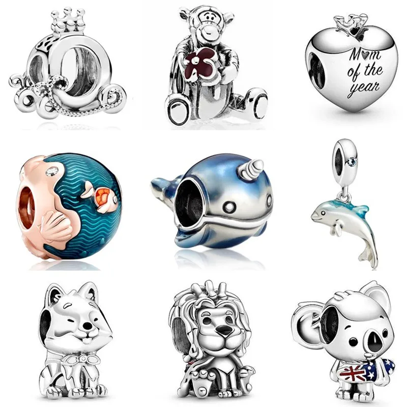 2020 серебро Цвет робот Лев КИТ сердца бусины для самостоятельного изготовления украшений, соответственные Европейской Пандоре обаятельные браслеты и браслеты для женщин Оригинальные Серебряные Подвески Ювелирные изделия
