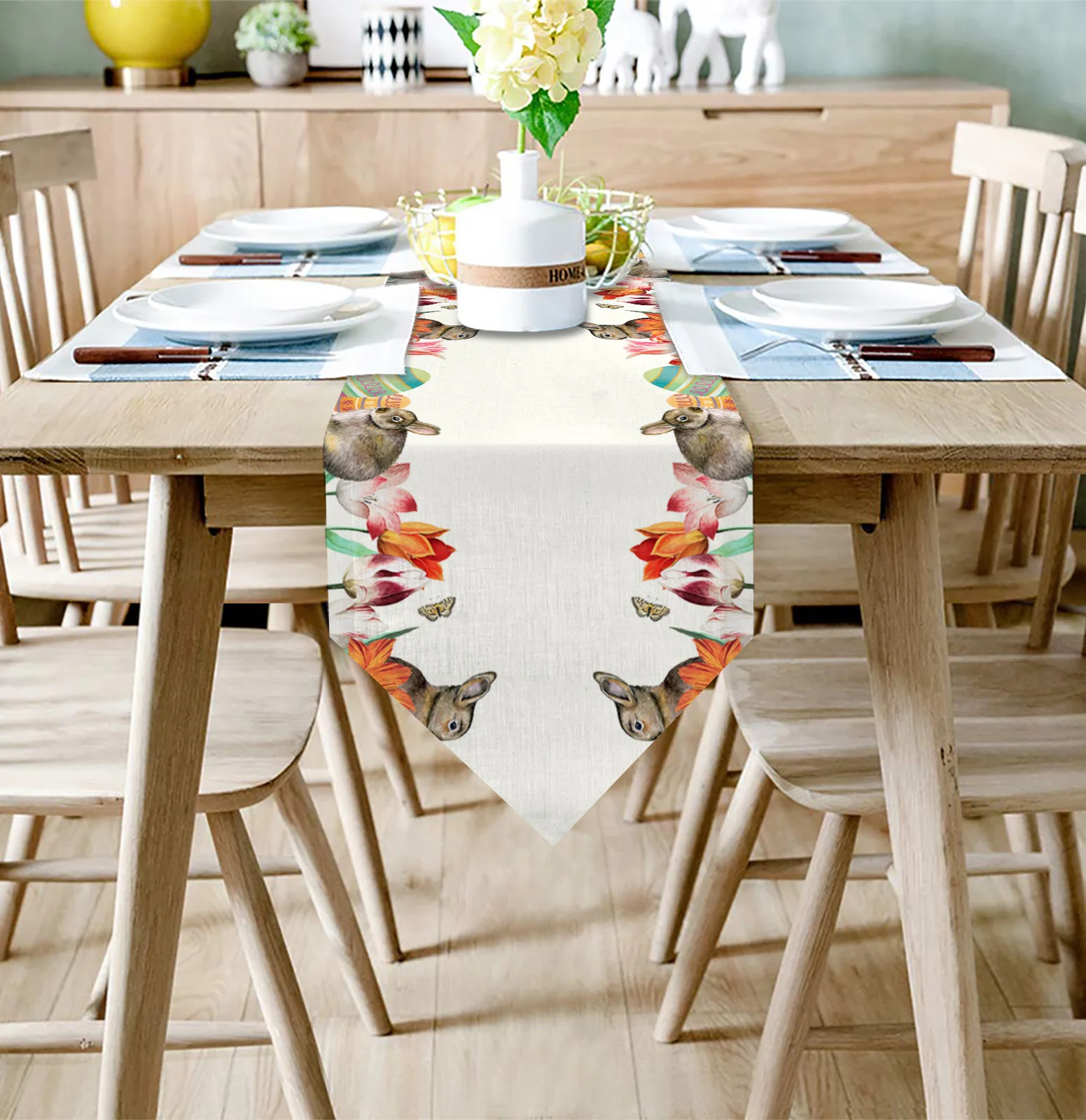 Пасхальные красочные яйца тюльпаны Кролик Настольная дорожка для дома Обеденный чайный столик туфли чехол для шкафа скатерть свадебное украшение для вечеринки