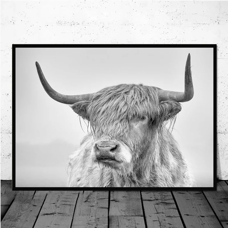 Постер и принты в скандинавском стиле, с изображением коровы, черного и белого цветов, Настенная картина для гостиной, украшение для дома