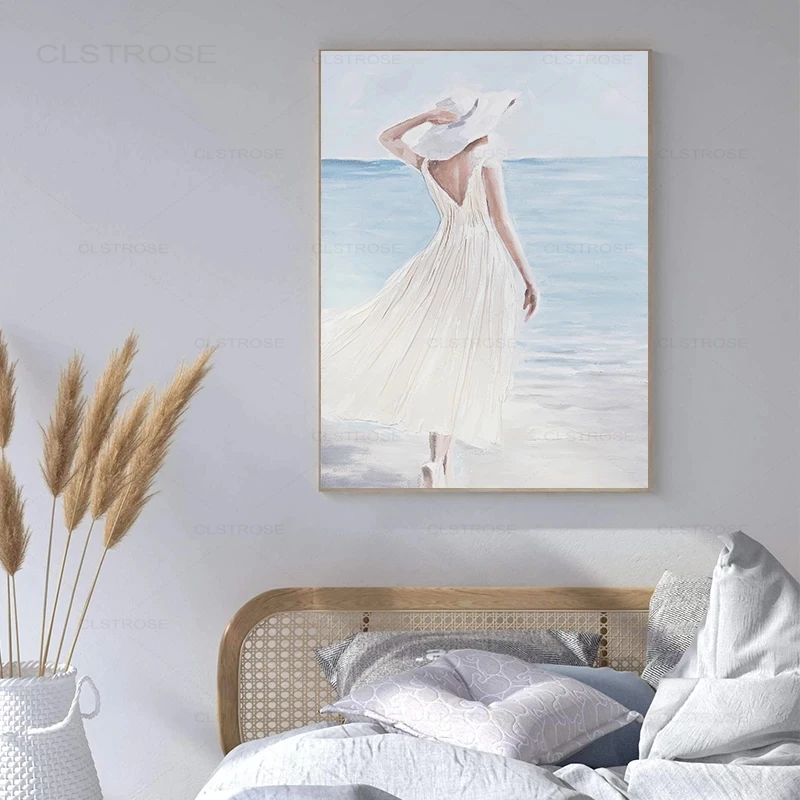 Скандинавская морская девушка, деревенский постер, абстрактный морской пейзаж, Масляные картины на холсте, Современное украшение для дома, настенные картины для гостиной