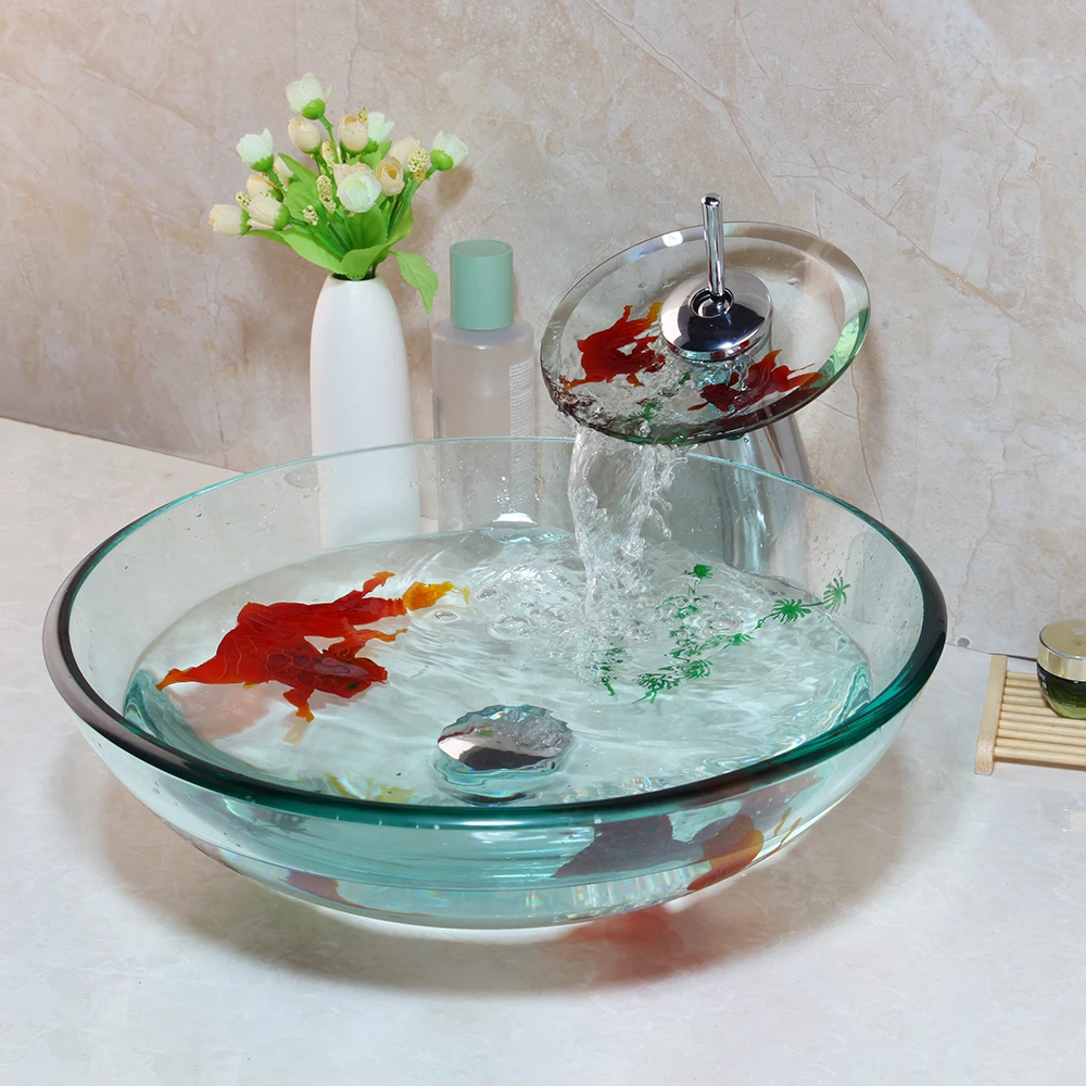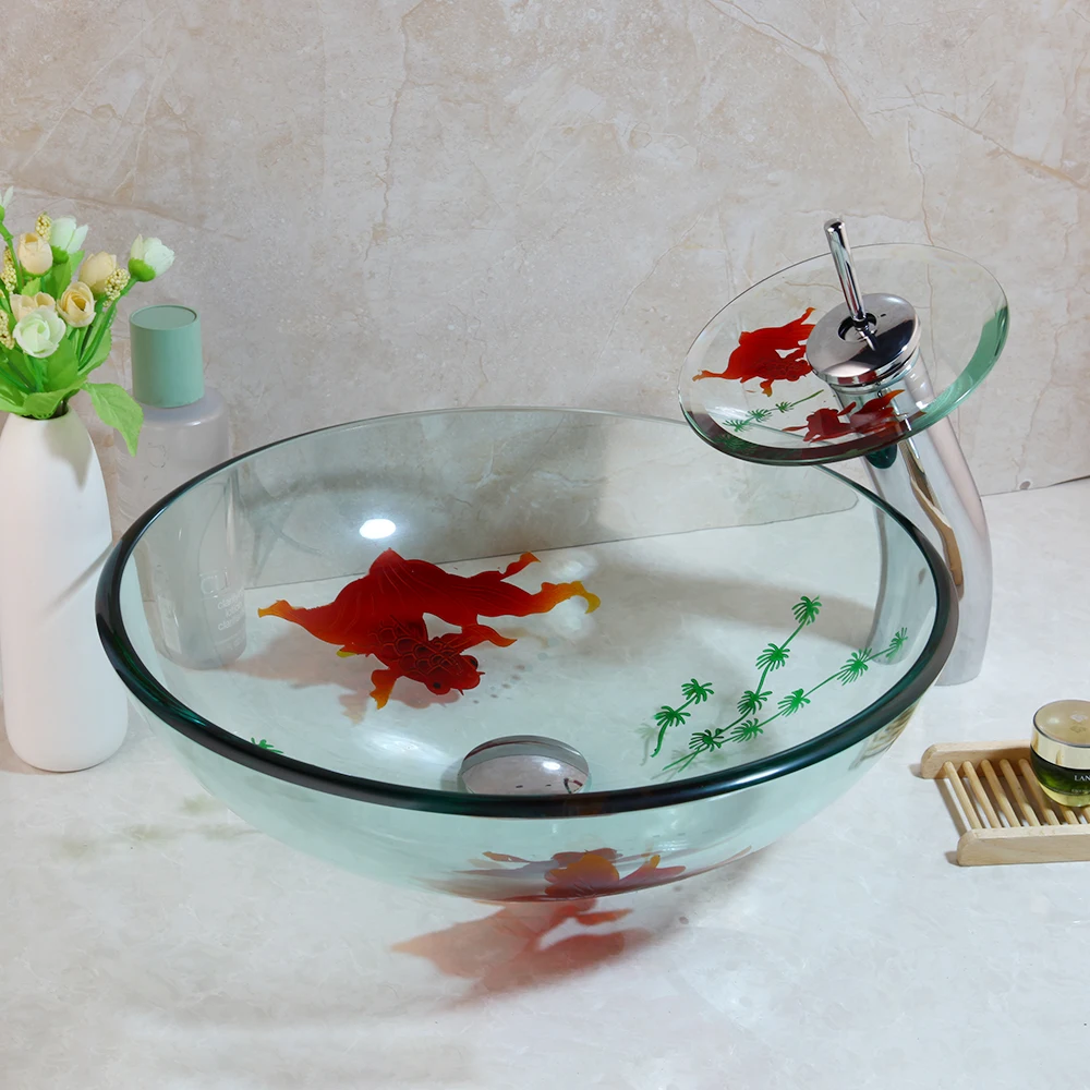 Заппо Золотая рыбка, стильный, Ванная комната раковина наборы смесителей закаленное бассейна Стекло раковина с водопроводный кран смеситель для раковины, набор и Pop Up слива