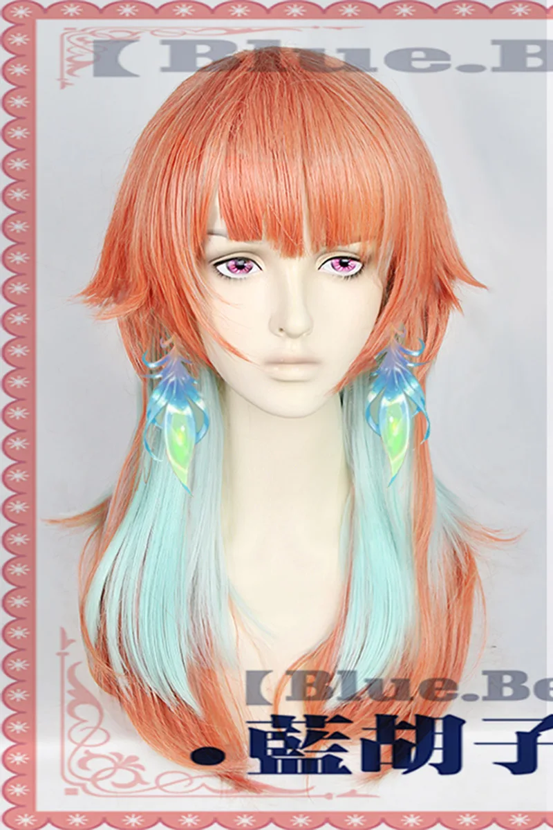 Парик для косплея VTuber Takanashi Kiara Hololive EN Kusotori Girls, оранжевый смешанный мятно-зеленый, Длинные прямые синтетические волосы + шапочка для парика