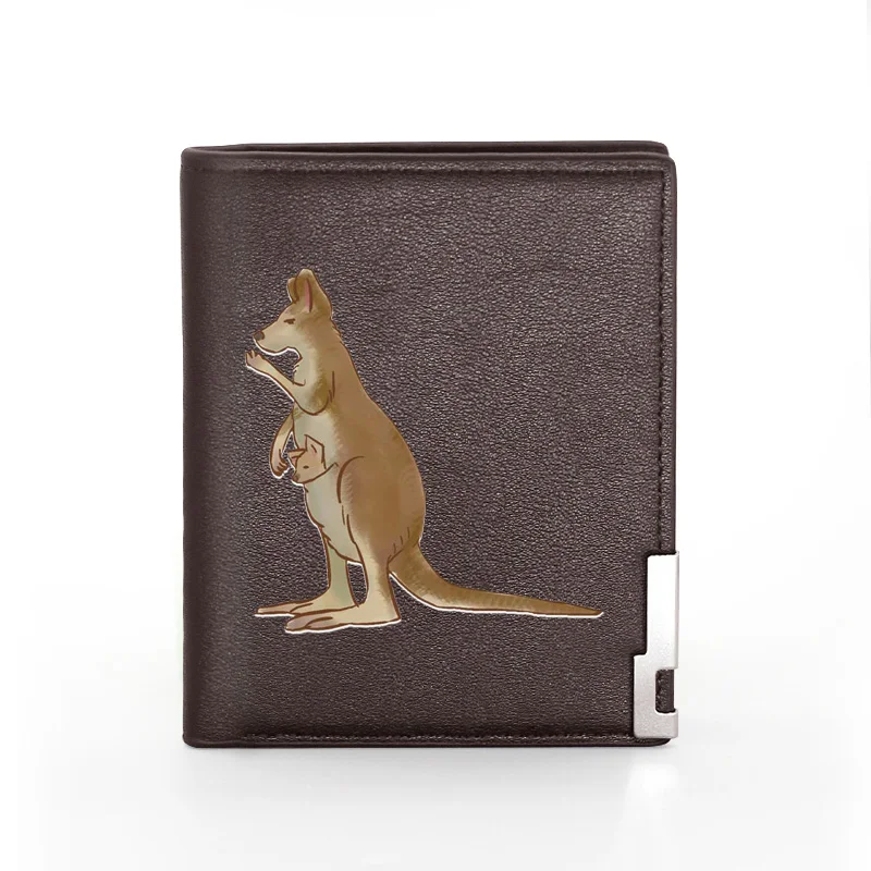 Высококачественный симпатичный кожаный кошелек с принтом кенгуру для мужчин и женщин двойной держатель для кредитных карт короткий кошелек для мужчин