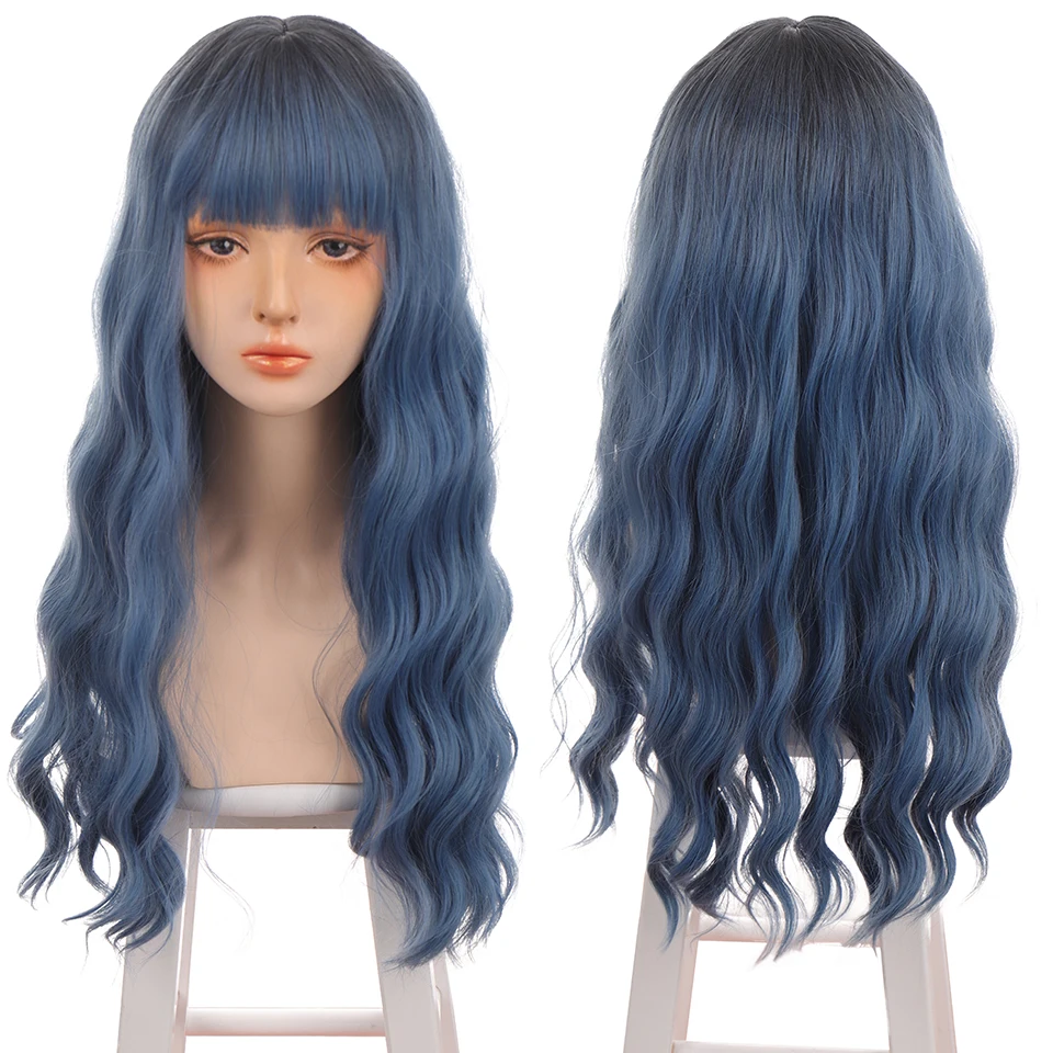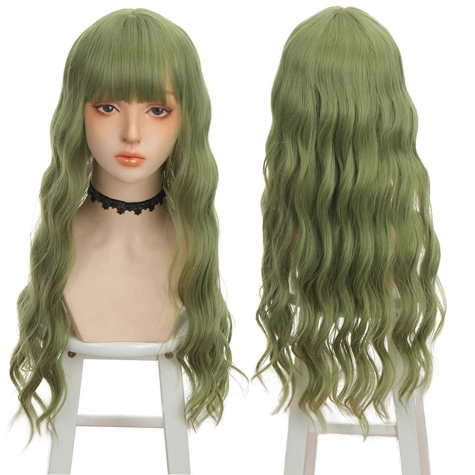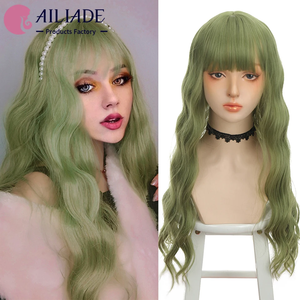 AILIADE Синтетические длинные зеленый волна воды парик из натуральных волос с челкой термостойкие парики в Стиле Лолита для Для женщин девочек Косплэй Вечерние