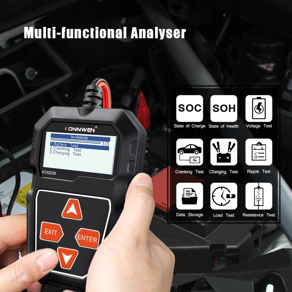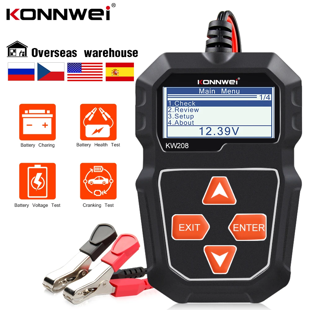Тестер автомобильного аккумулятора KONNWEI KW208, 12 В, автоматический диагностический тестер, анализатор, автомобильный свинцово-кислотный тестер для мокрых аккумуляторов, зарядка Cricut инструменты для загрузки