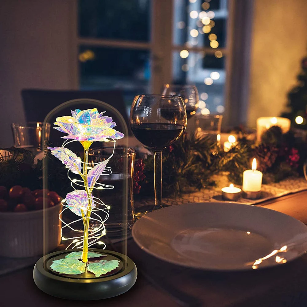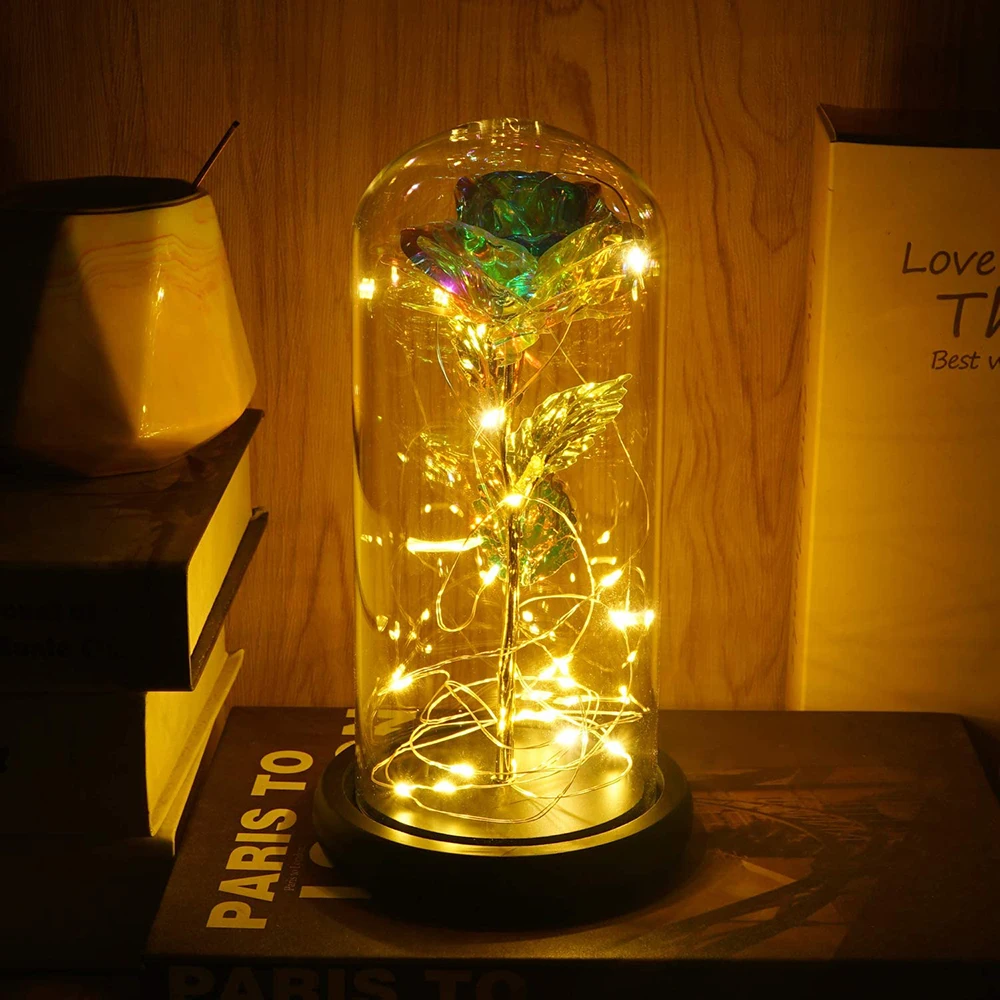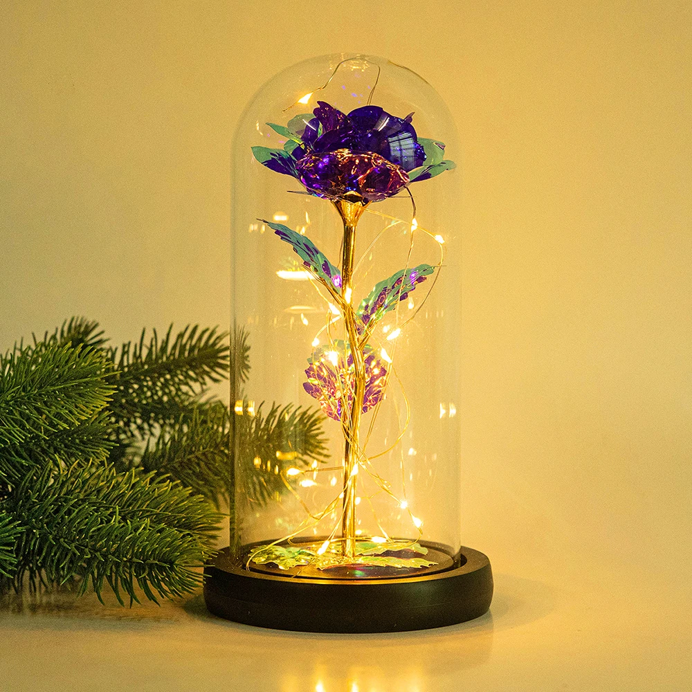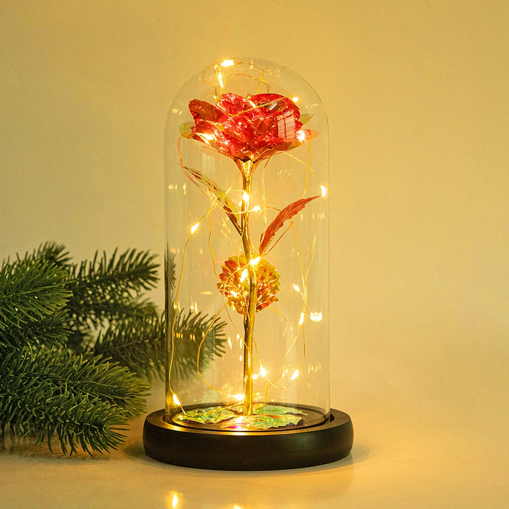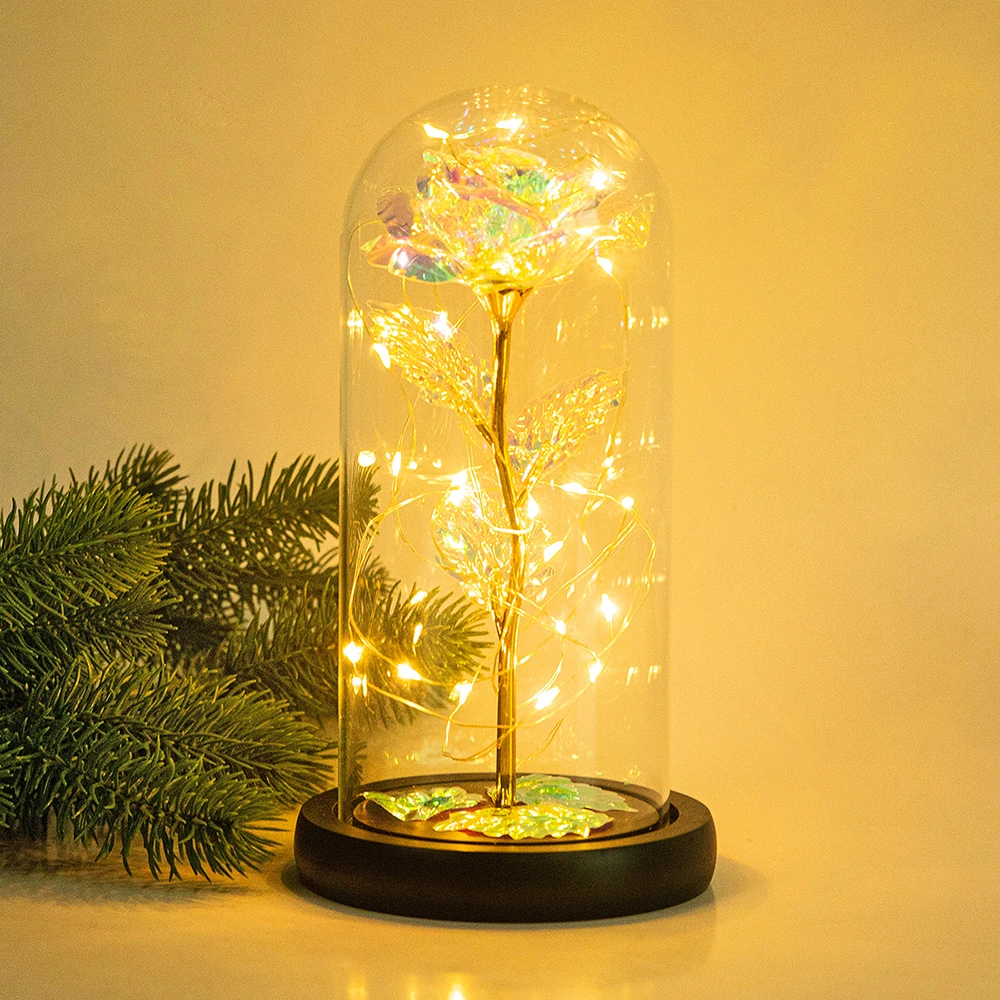 Очаровательный красивый розовый светодиодный светильник со стеклянным куполом на деревянной основе, Ночной светильник для свадебной вечеринки, подарок на день матери, день рождения, День святого Валентина