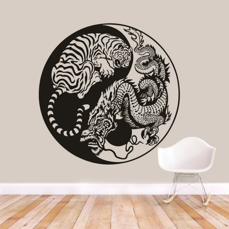 Наклейка на стену свернутый Тигр съемный стикер на стену скрытый Дракон Азиатский мифологический стиль настенный плакат Инь Ян виниловый настенный арт
