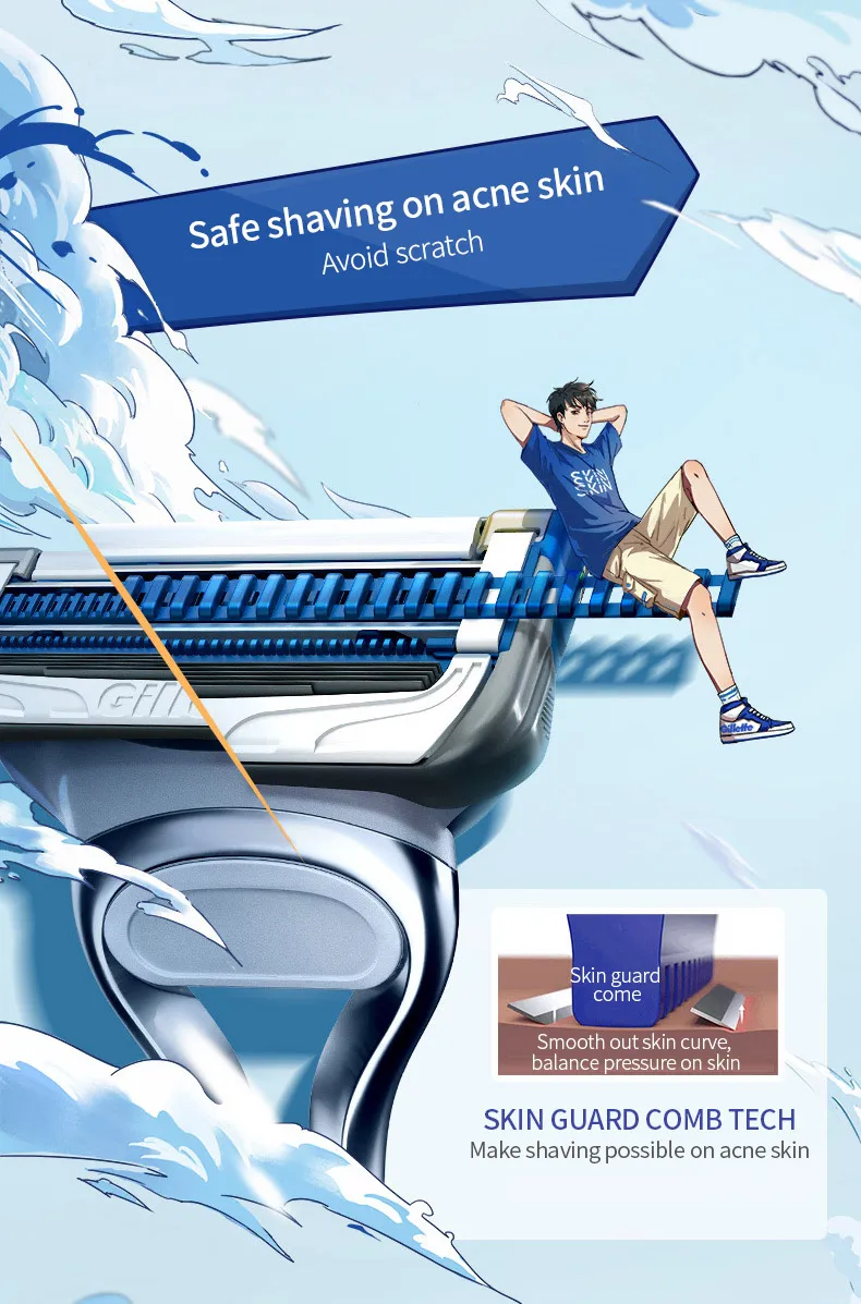 Лезвия для бритвы Gillette SkinGuard Fusion, смазывающая полоска с эссенцией авокадо для более гладкого бритья, подходит для всех SkinGuardFusion 5