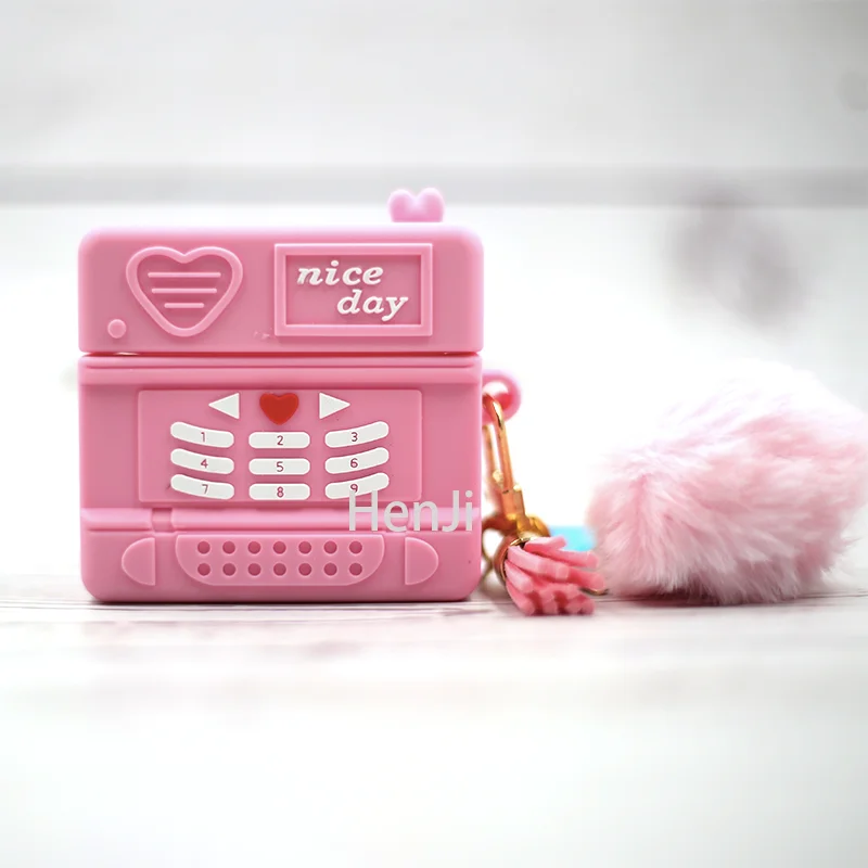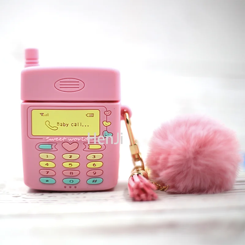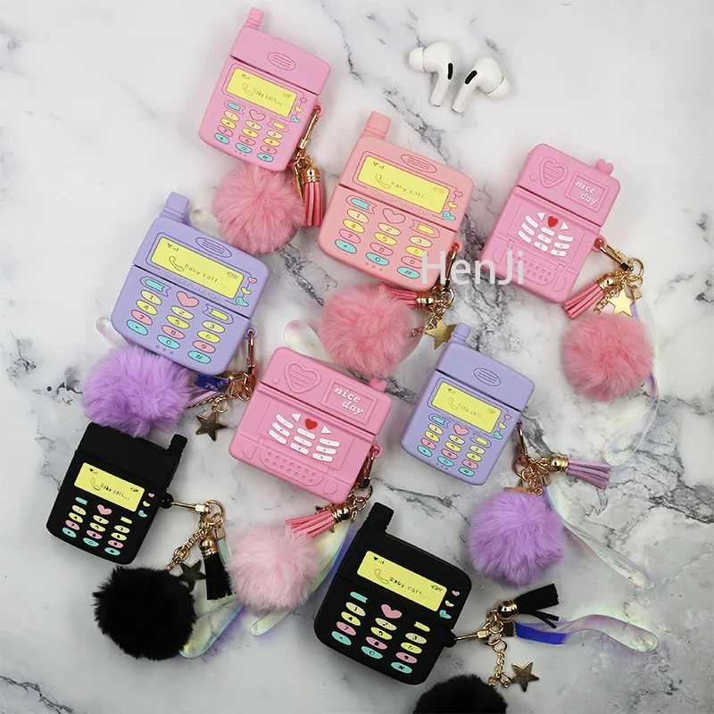 3D милый розовый ретро мобильный телефон дизайнерского бренда силиконовый чехол для Apple AirPods 12pro Bluetooth гарнитура чехол Coque