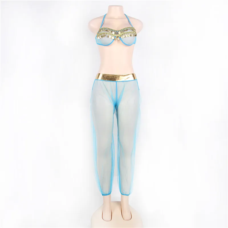 Сетчатый танцевальный бюстгальтер и пояс Comeondear, комплект из бюстгальтера + трусиков + повязки на голову + вуали + бюстгальтера с блестками и пояса, сетчатый комплект с юбкой R80437