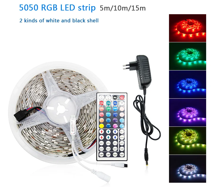 5 м 10 м 15 м 20 м Светодиодная лента 5050 IP20 IP65 RGB Светодиодная лента светильник Кая лента 12 В постоянного тока RGB Диодная лента ИК контроллер адаптер