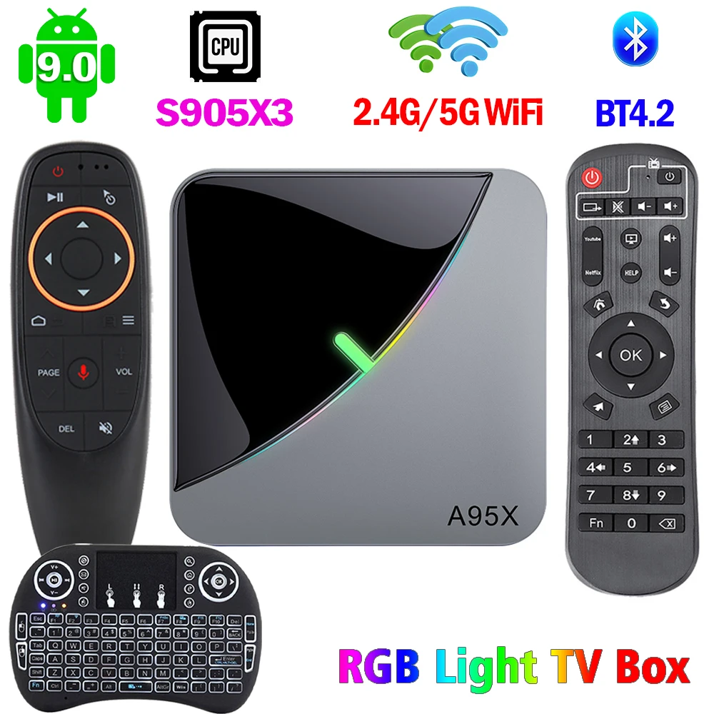 2020 A95X F3 воздуха Android 9,0 8K RGB светильник ТВ Box Amlogic S905X3 4 Гб 64 Гб Wi-Fi 4K Netflix Смарт ТВ BOX Android 9 A95XF3