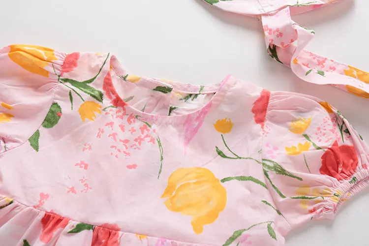 Платье летнее для девочек, из чистого хлопка, с цветочным принтом, ...