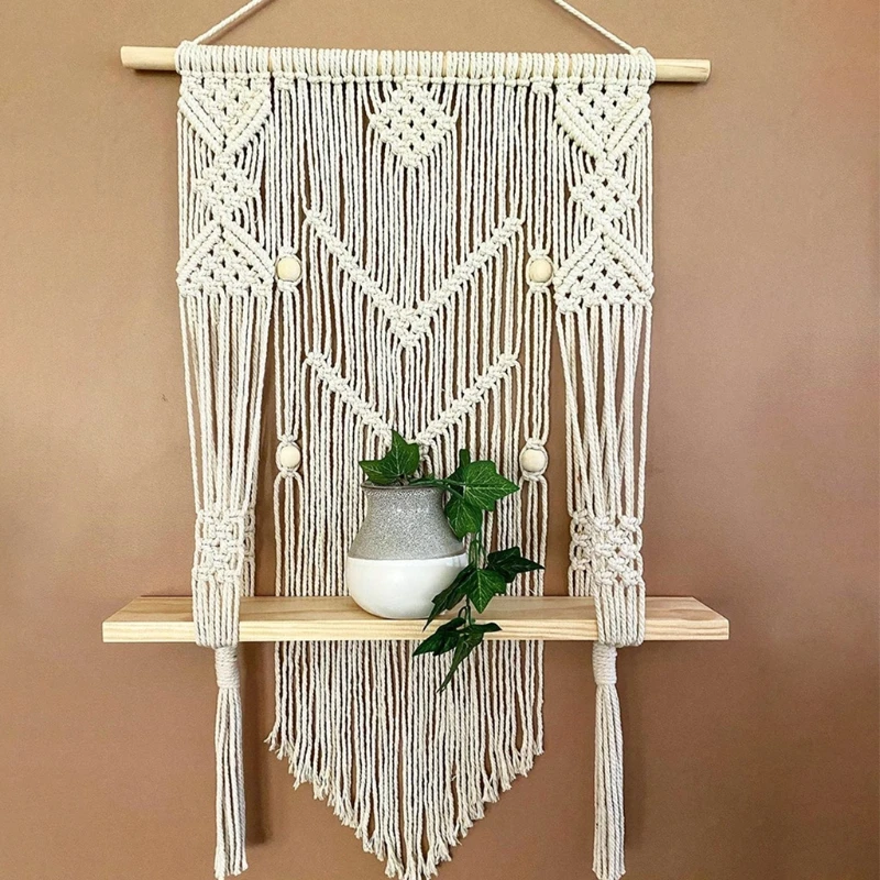 Плетеная вручную гобелен из макраме подвесная полка богемные деревянные полки с кисточками Свадебная вечеринка домашнее украшение для квартиры спальни