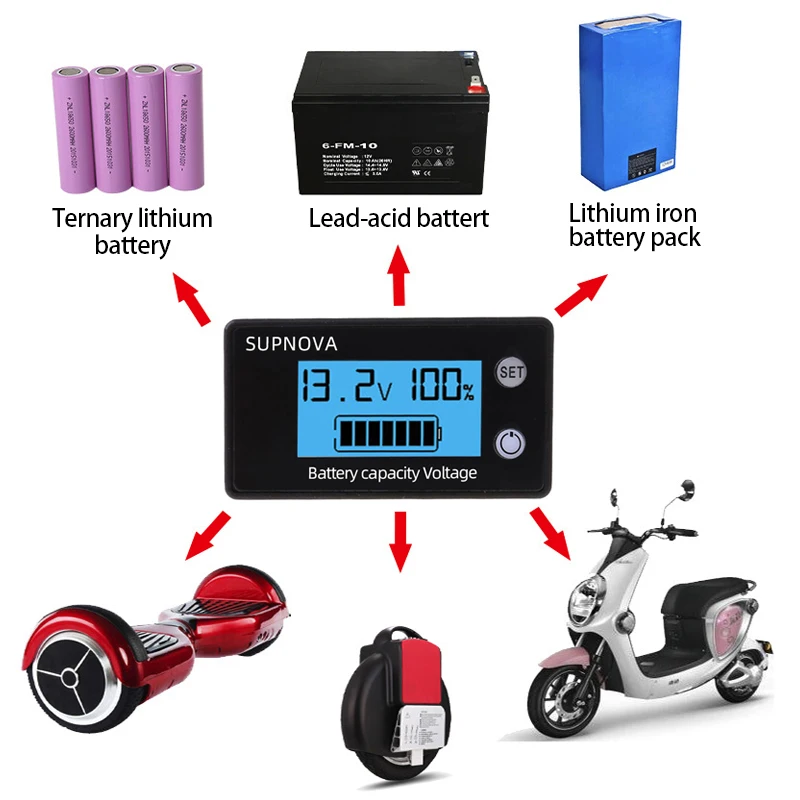 Тестер индикатора емкости аккумулятора, 8-100 В постоянного тока, свинцово-кислотная литиевая батарея LiFePO4, для автомобиля, мотоцикла, вольтметр измеритель величины напряжения, 12 В, 24 В, 48 В, 72 в