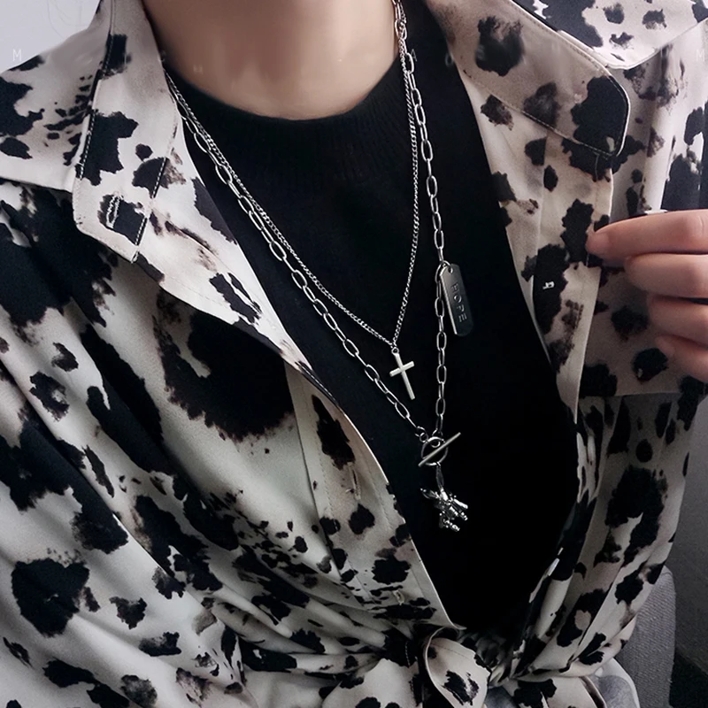2021 индивидуальная из нержавеющей стали в стиле хип-хоп, панк многослойная цепочка ожерелье, украшенная металлическими крестами, с брошью в виде кролика, колье для женщин, ювелирные изделия