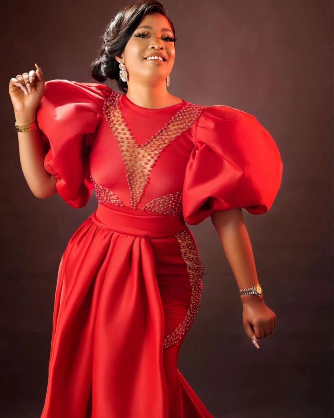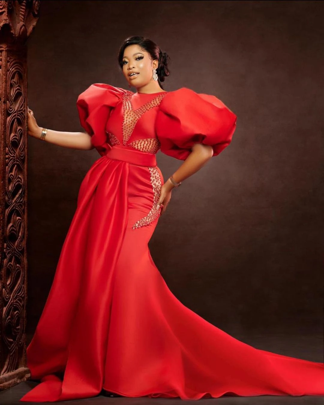 Роскошный красный размера плюс под традиционное платье Aso Ebi вече...