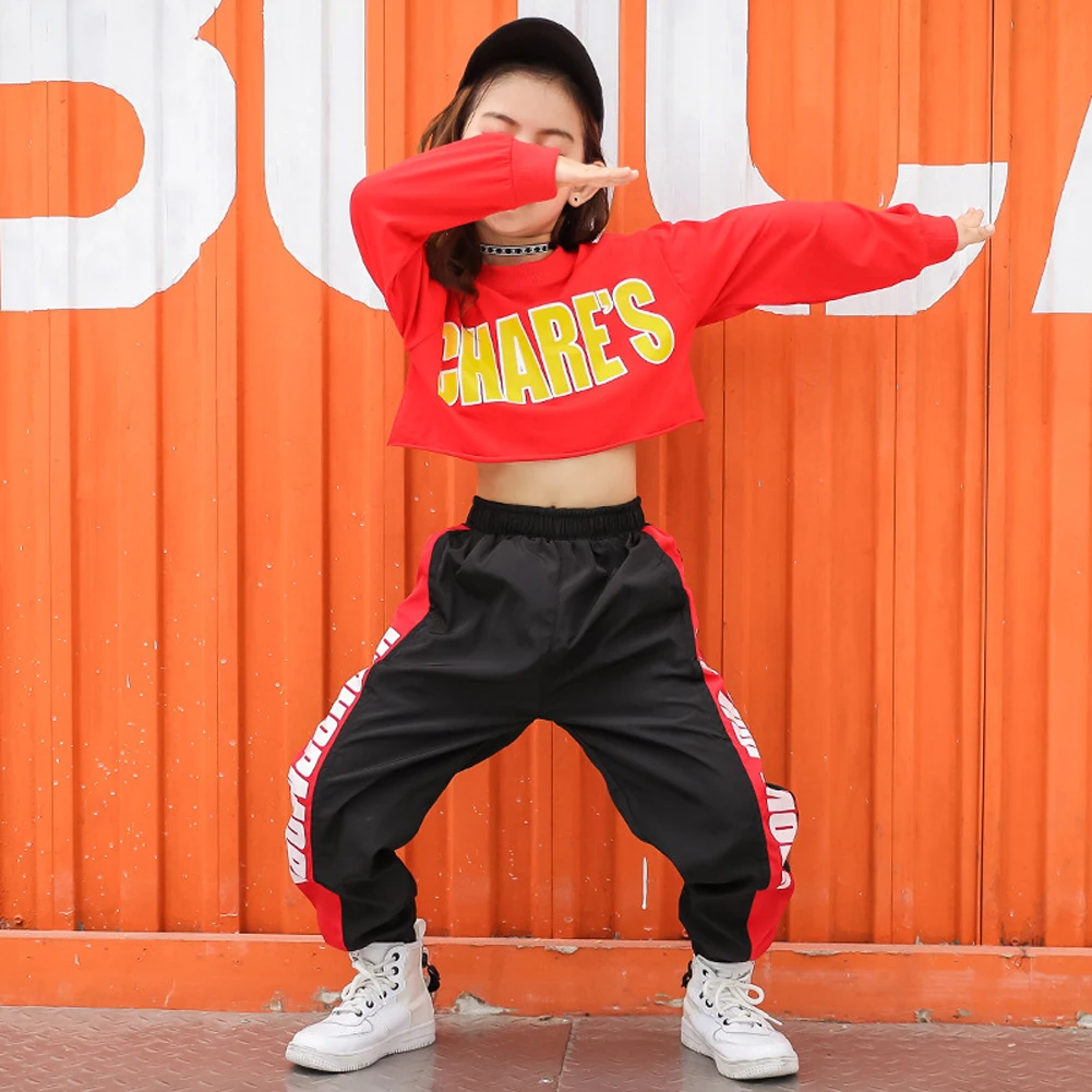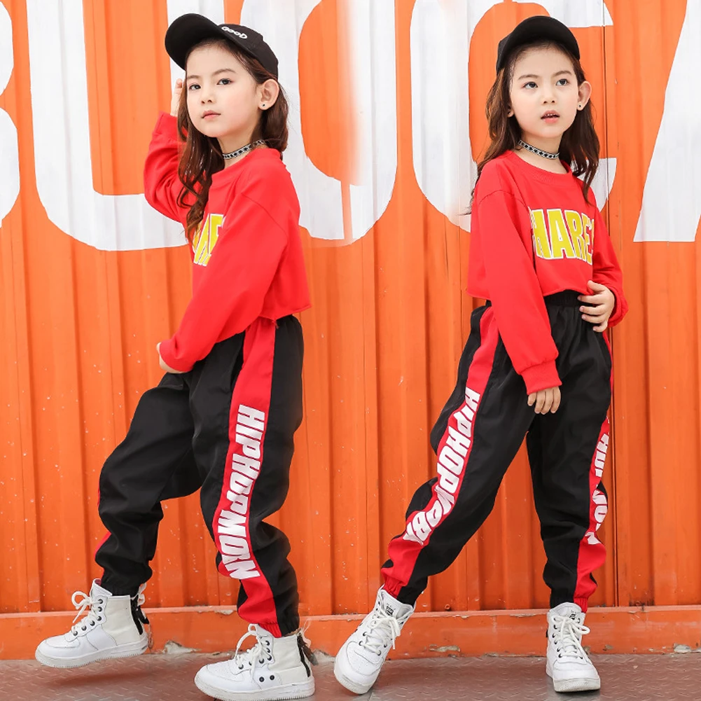 От 4 до 16 лет куртка с длинным рукавом для девочек в стиле хип-хоп, топ с буквенным принтом или Спортивные штаны танцевальный костюм