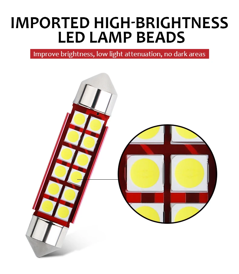 2 шт. LED гирлянда для автомобиля мощностью 31363941 мм C5W C10W 3030-612Smd Авто купола лампочки Canbus Нет Ошибка салона рабочие лампы Диод