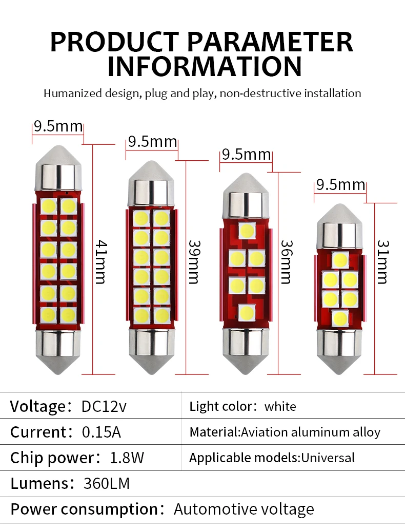 1 шт. 8000 К Ice Blue с can-bus C5W C10W гирлянда 31 36-39-41, 42 м...
