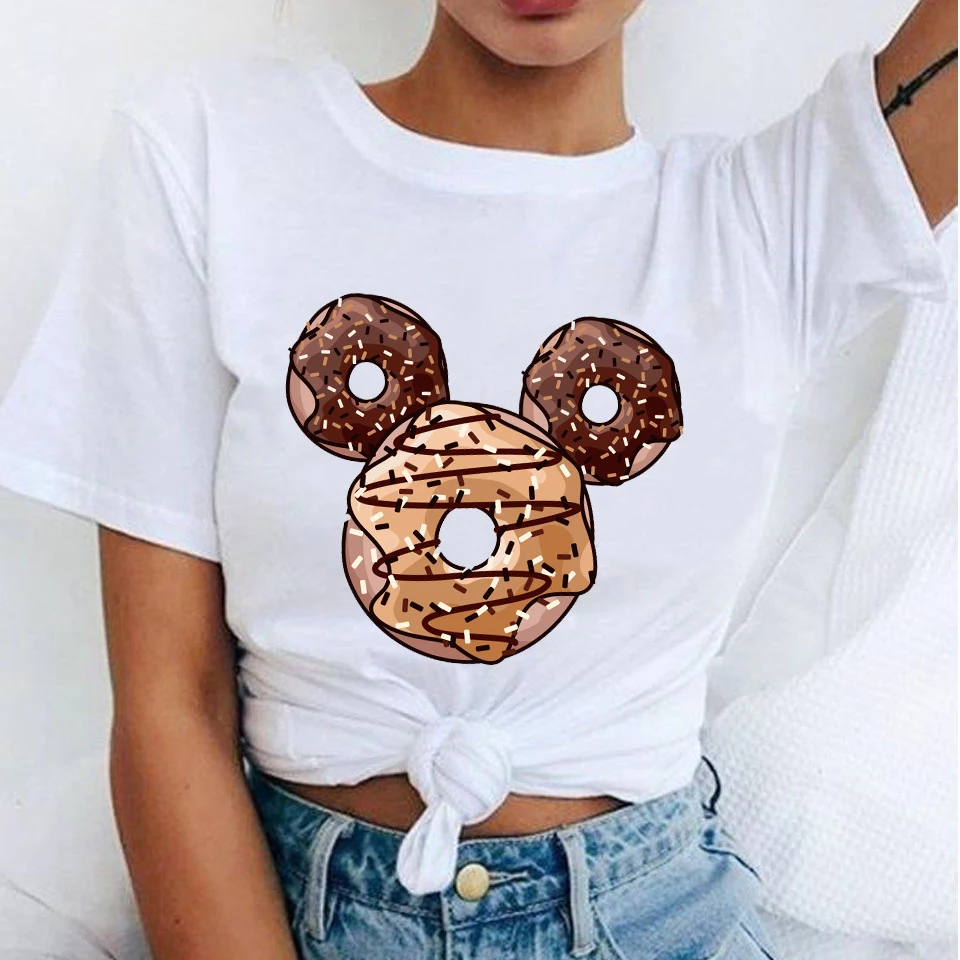 Женская футболка с принтом пончиков и круглым вырезом, с коротким р...