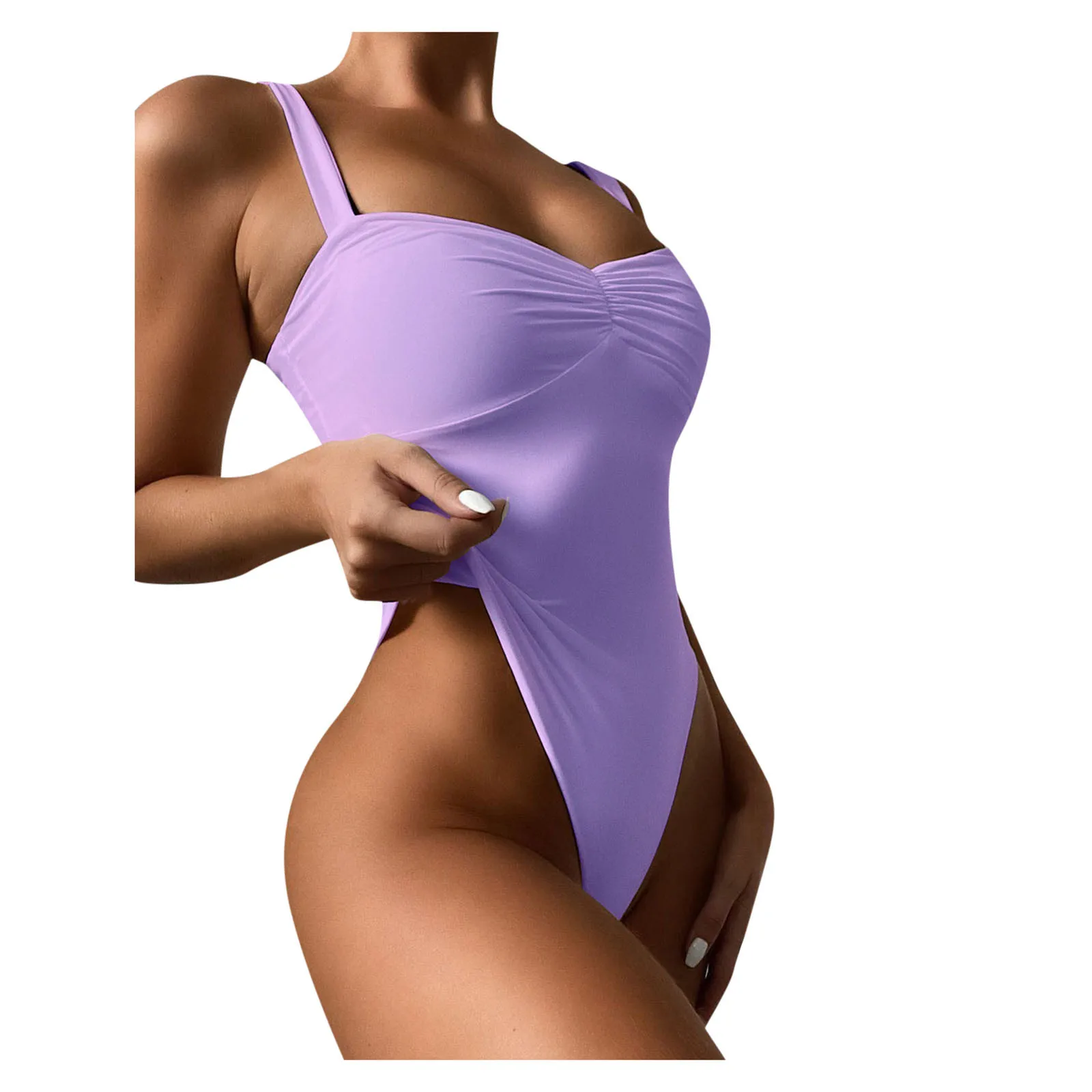 Women Solid Thong Bikini Sexy Swimsuit One Piece Swim Suit