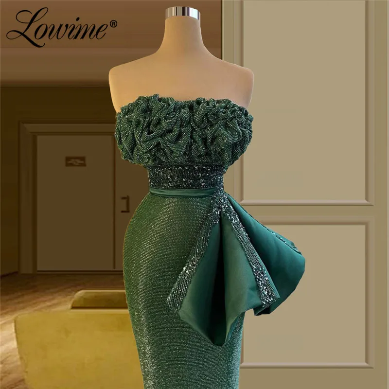 Зеленый пол Длина Формальные Вечерние платья с блестками арабский Платья знаменитостей 2021 для вечеринки на красной дорожке платье без бретелей De Soiree
