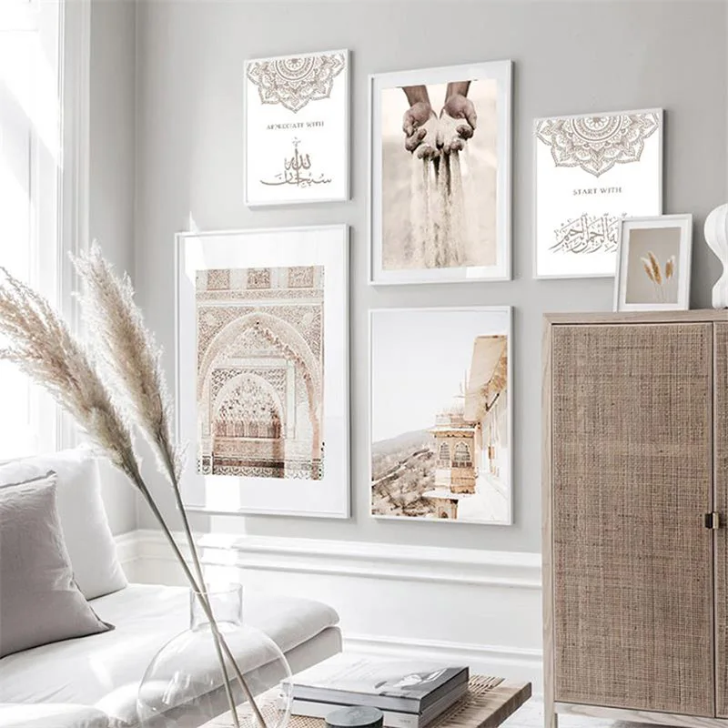 Исламский бежевый постер пейзаж холст печать мечеть Марокко дверь н...