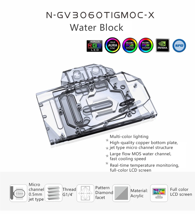 Петля: неалюминиевая(Включая, но не ограничиваясь следующими моделями)GIGABYTE RTX 3060TI GAMING OC 8GGIGABYTE GeForce RTX 3060 Ti EAGLE OC 8GGIGABYTE GeForce RTX 3060 GAMING OC 12GGIGABYTE GeForce RTX 3060 EAGLE rev1.0Совместимость основана только на справочном дизайне, блок может не соответствовать измененным/супер-разгонным и другим вариантам третьей стороны, которые отличаются от эталонного дизайна.Фитинги: Резьба G 1/4Стоковые бэкплейты: из-за разницы в монтаже между картами, стоковые бэкплейты не гарантированно подходят.