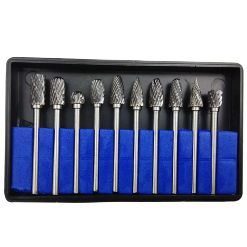 10 шт. ротационных напильников из биты гравировальный напильников ротационного резака Вольфрам твердосплавные фрезы точки хвостовик шлифовального станка инструменты для резьбы по дереву