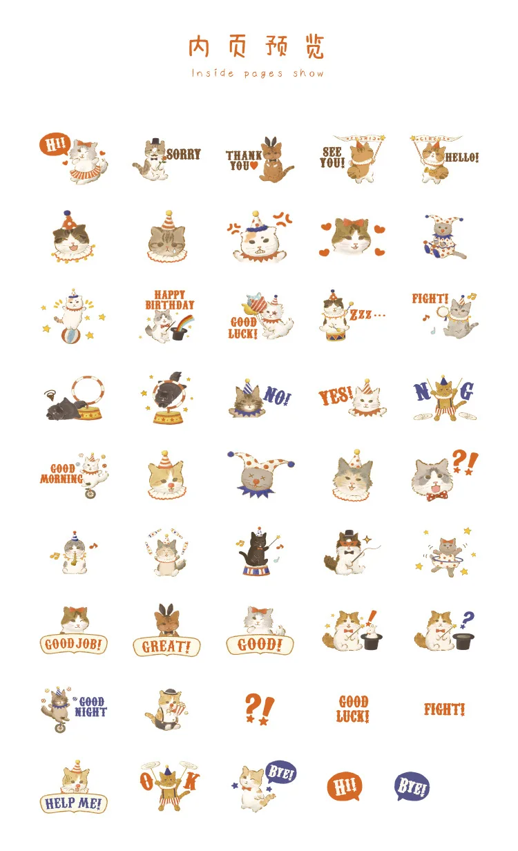 Милые цирковые наклейки в виде кота, 45 шт.кор., декоративные накле...