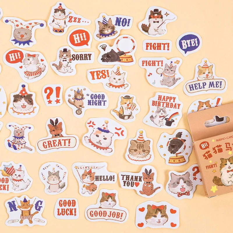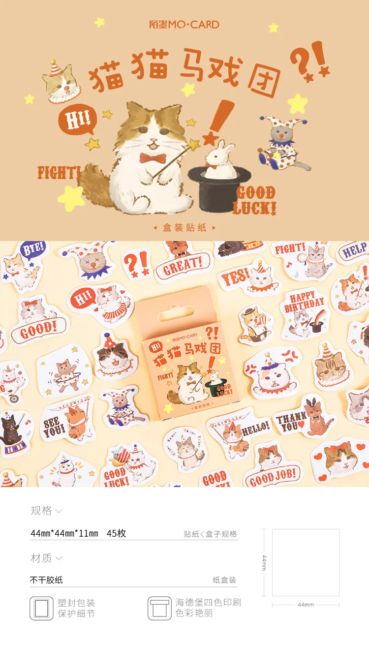 45 штук в коробке, наклейка с котом, цирком, животными, Мультяшные ...