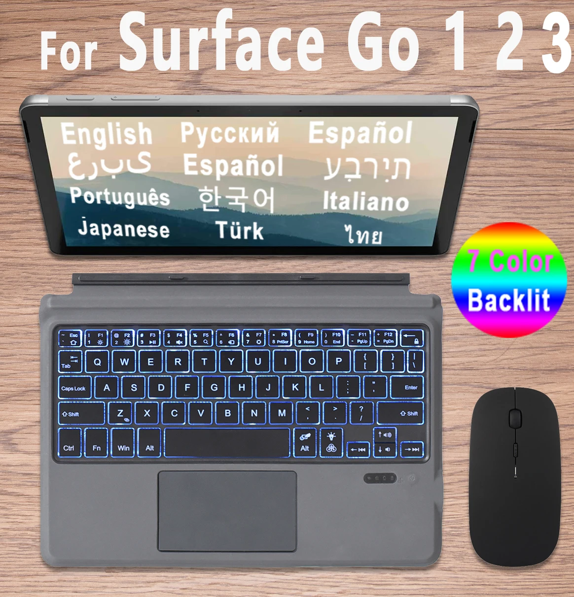Клавиатура с тачпадом с подсветкой для Microsoft Surface Go 1 2, совместимая с Bluetooth, Турецкая, Арабская, иврит, русская, испанская клавиатура