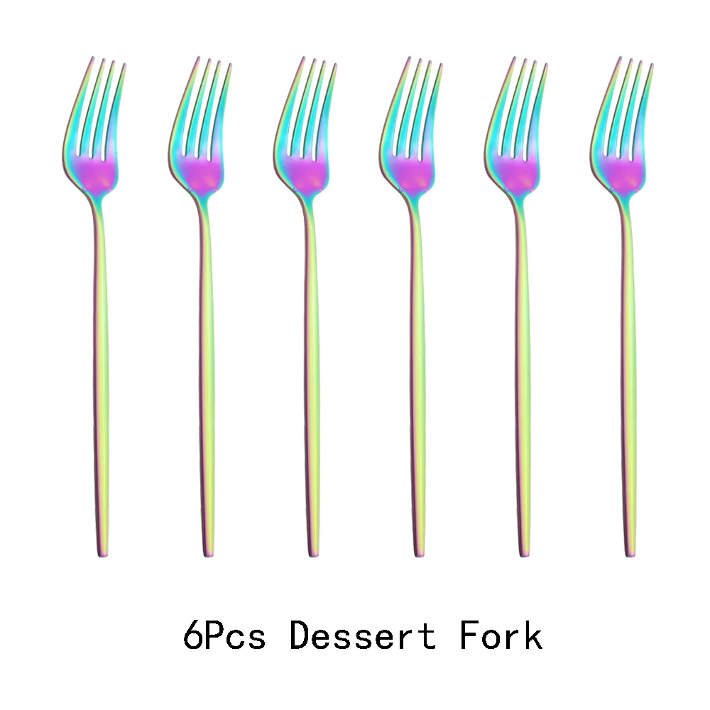 6 шт.компл. черного и золотого цвета Набор Десертных Вилок зеркало Нержавеющаясталь красочный набор вилок столовые приборы набор столовых приборов дома вечерние Кухня посуда