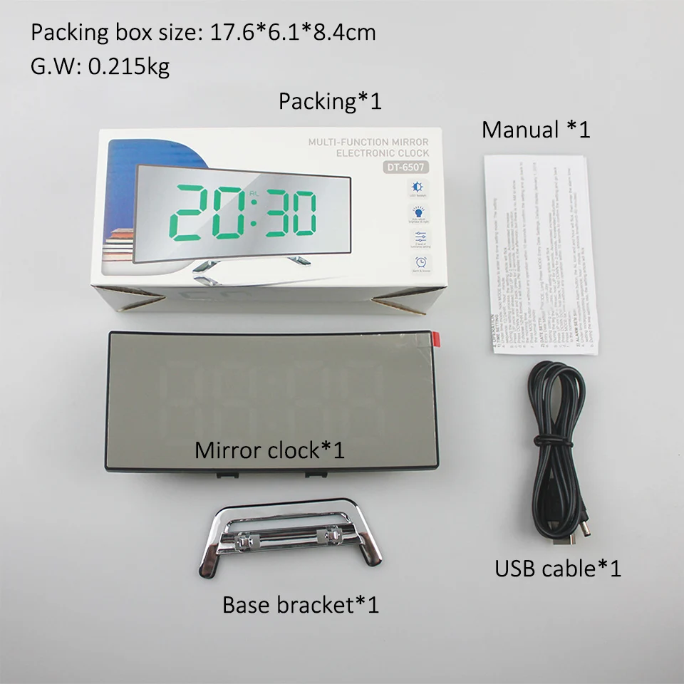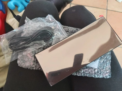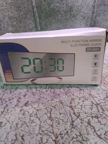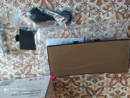 Часы зеркального эффекта были получены быстро в течение 15 дней. Как описано, он поставляется с USB-кабелем (но без вилки) и без батарей. Жаль, что мы не можем использовать будильник на батарее (он остается включенным только на секторе, на батарее он выключается через несколько секунд).