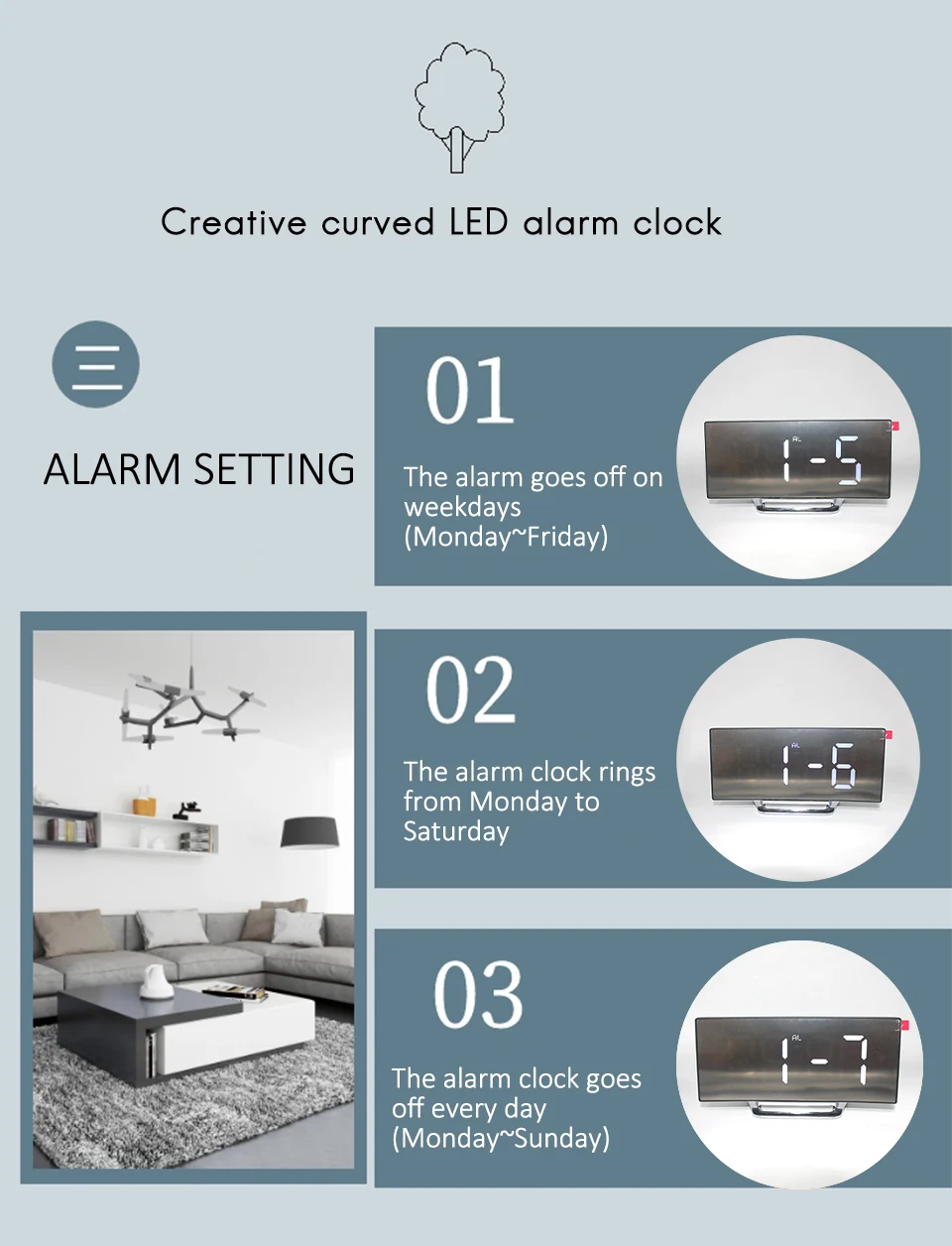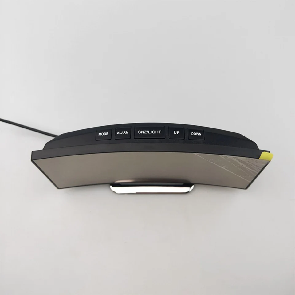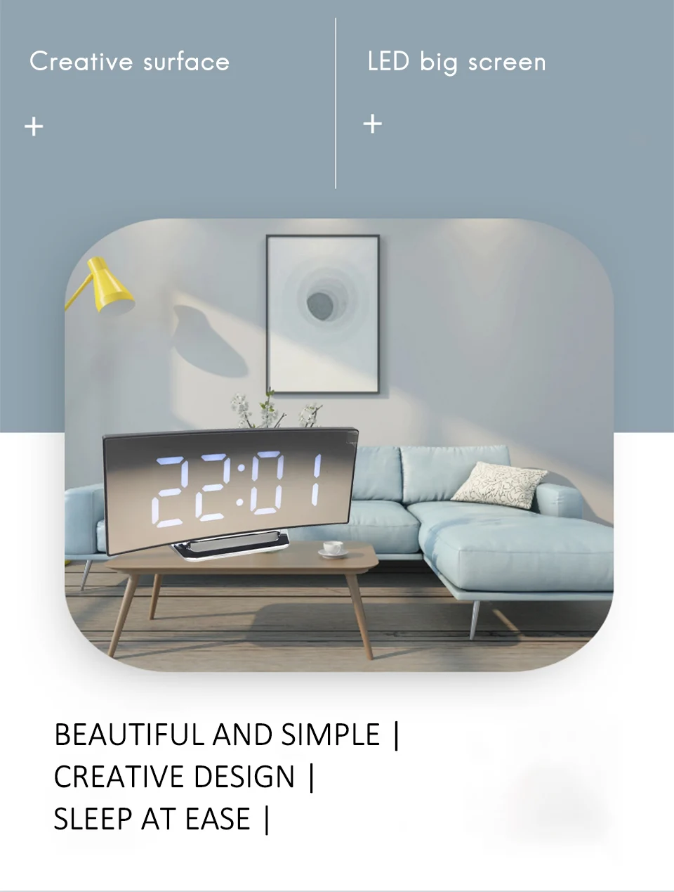 Будильник с изогнутым светодиодным дисплеем, цифровые настольные часы с будильником для детской спальни, функция повтора температуры, домашний декор