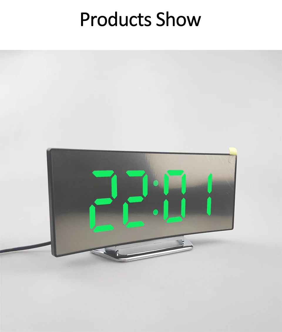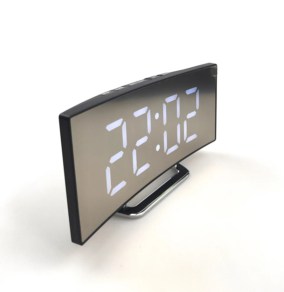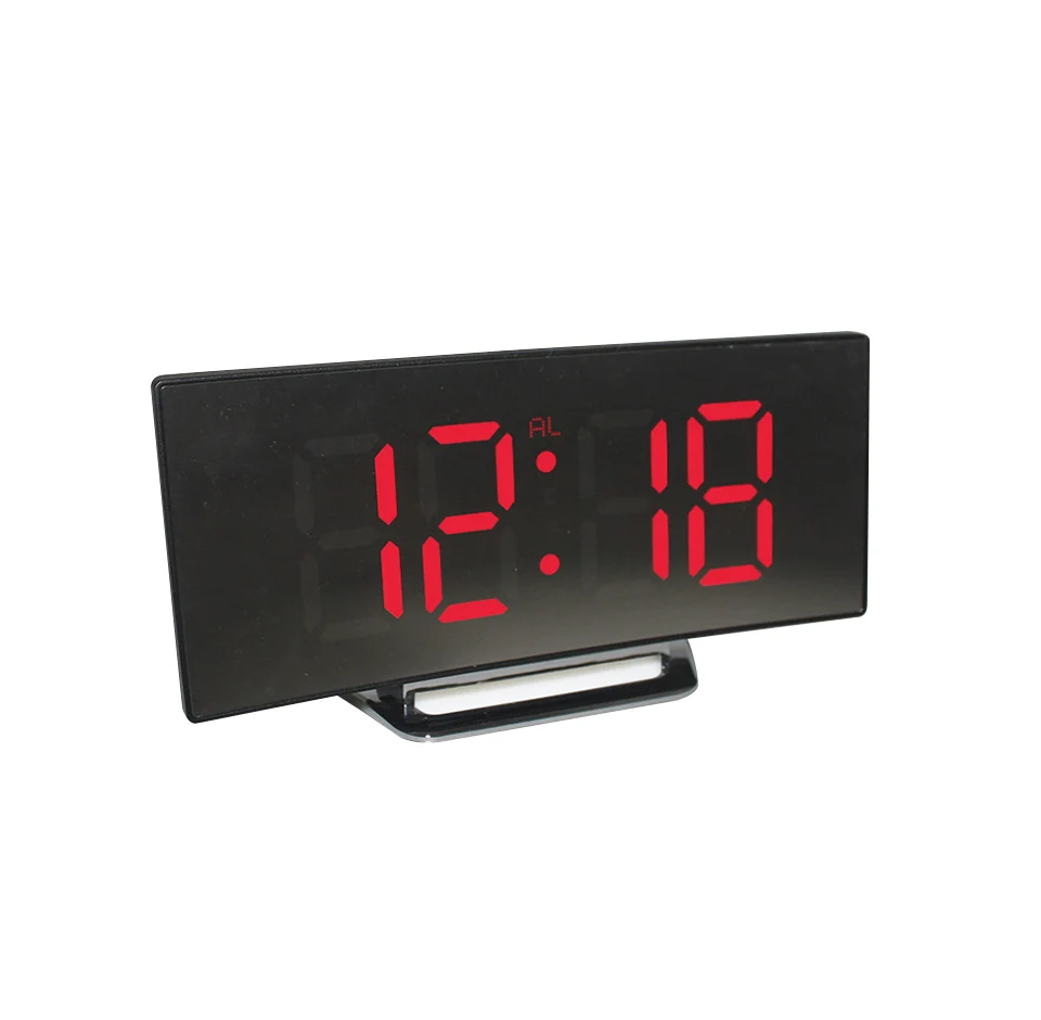 Будильник с изогнутым светодиодным дисплеем, цифровые настольные часы с будильником для детской спальни, функция повтора температуры, домашний декор