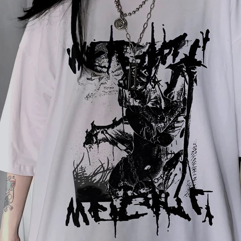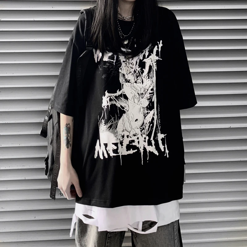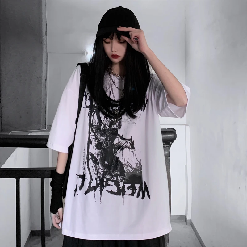 Женская футболка в стиле Харадзюку, черная футболка с рисунком эмо ...