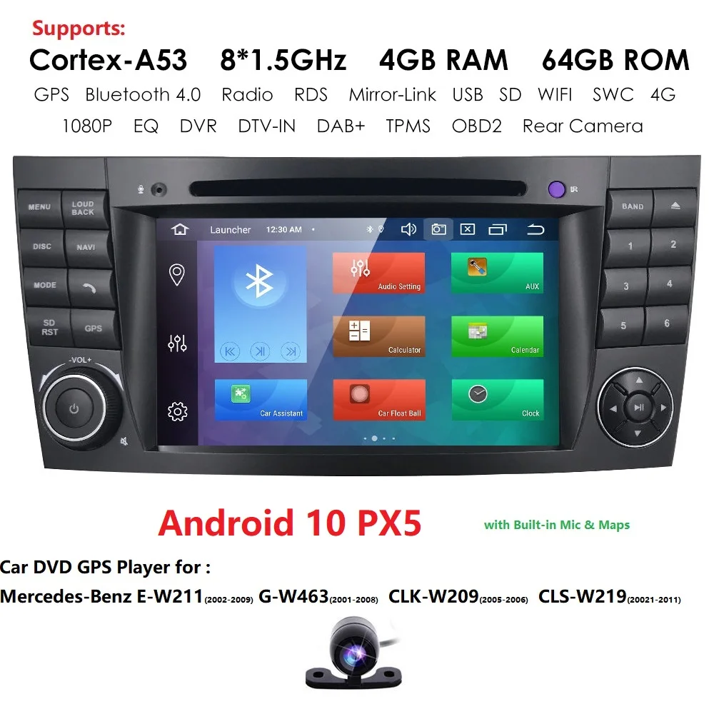 Автомобильный GPS-навигатор для Mercedes W211 W219 W463 CLS350 CLS500 CLS55 E200 E220 E240 E270 E280, аудиоплеер с 7 "IPS DSP 4G 64G Android 10, dvd-плеером