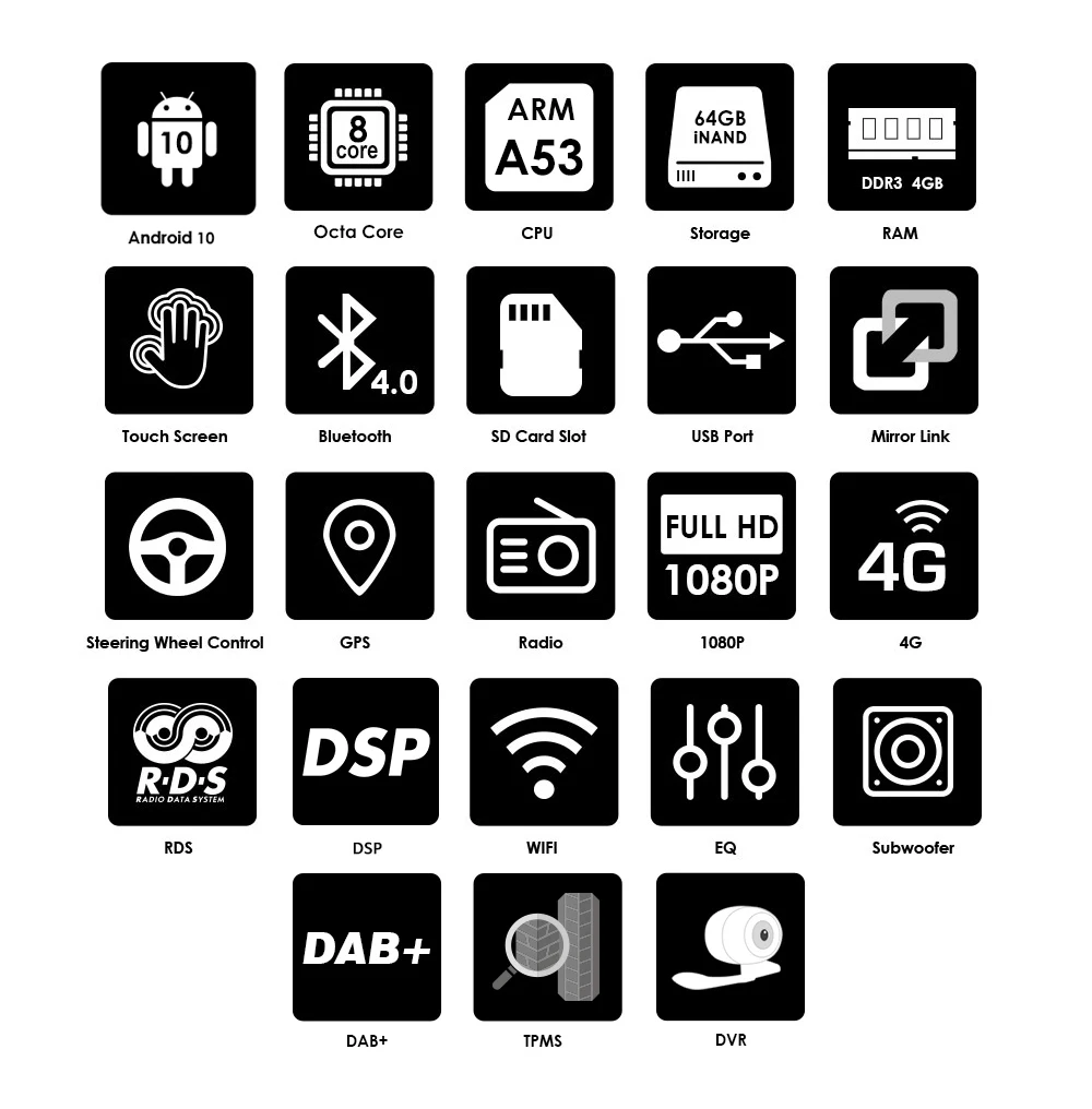 Автомобильный мультимедийный плеер с GPS, Android 10, 4 ГБ, 64 ГБ, ...