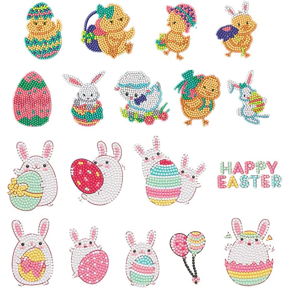 Набор для рисования с изображением кролика с яйцом и цыпленка, Пасхальная тема, алмазная вышивка картины-наклейки сделай сам, бриллиантовые наклейки