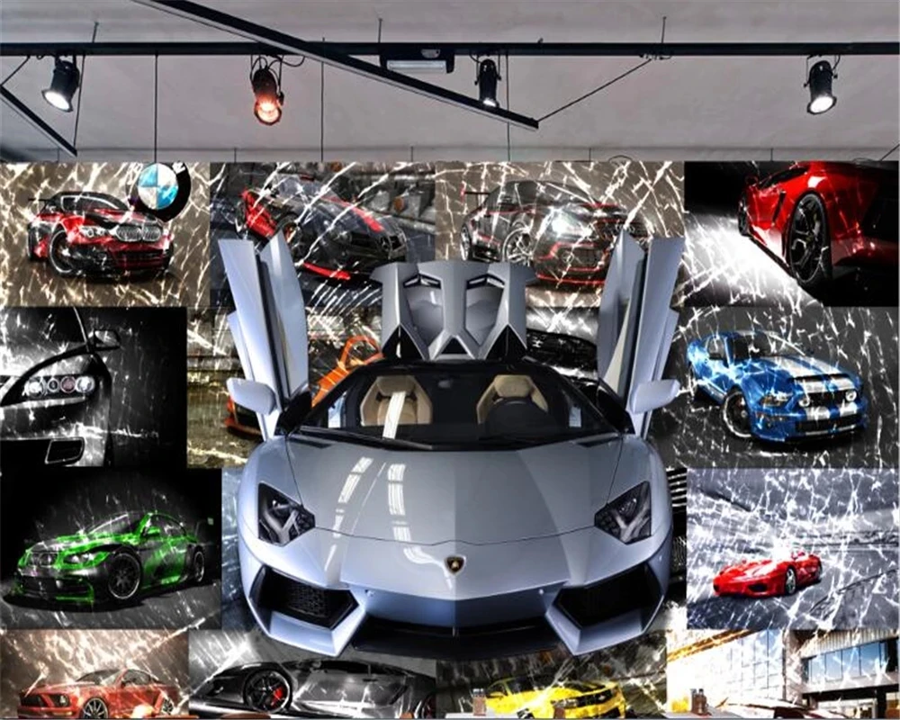 Самоклеящиеся обои на стену, профессиональные высококачественные 3D-обои для спортивного автомобиля, стены с разбитым стеклом
