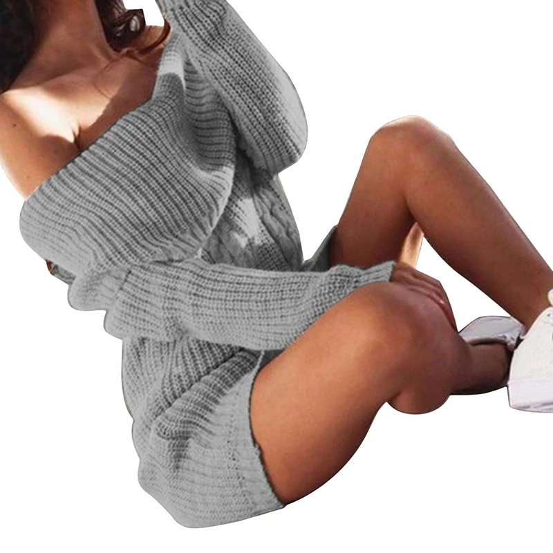 Свитер с открытыми плечами для женщин, вязаное платье, женское платье-свитер с длинным рукавом, осенние свободные вязаные повседневные платья для дам 2022