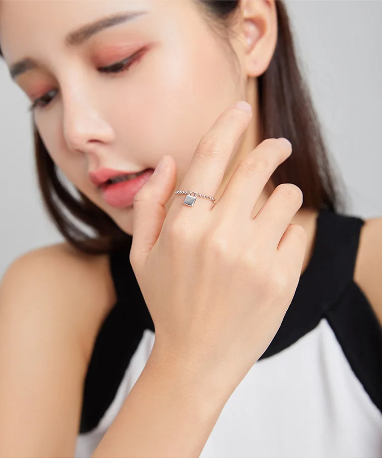 Женское кольцо-цепочка bamoer, квадратное кольцо из циркония с геом...